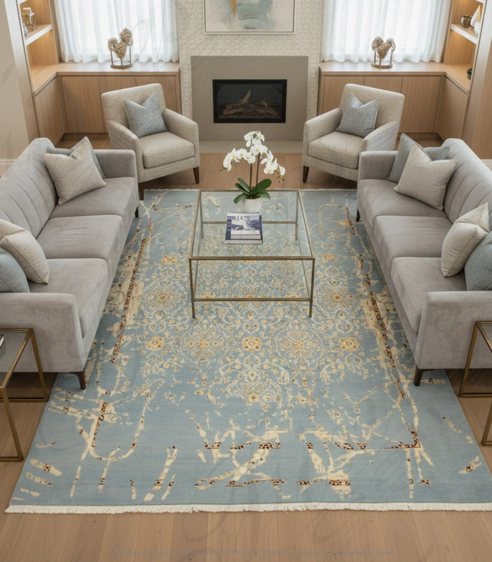 Hand-Knotted Transitional Rectangle Rug with Faded Traditional Design - Expertly crafted with a worn, vintage-inspired look that adds character to any space. This premium quality rug features intricate traditional patterns with a contemporary transitional style, perfect for adding warmth and sophistication to your home décor. Available in various sizes to suit your space. Call 1-866-