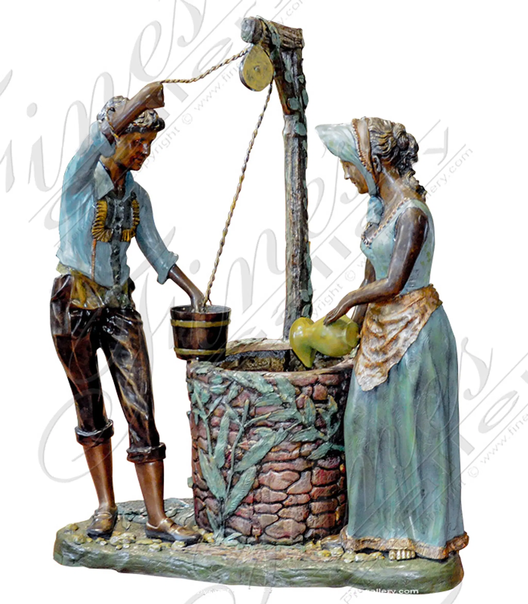 Young Couple at the Well Bronze Fountain Sculpture - Elegant Garden Water Feature - BF-807 (View 2)