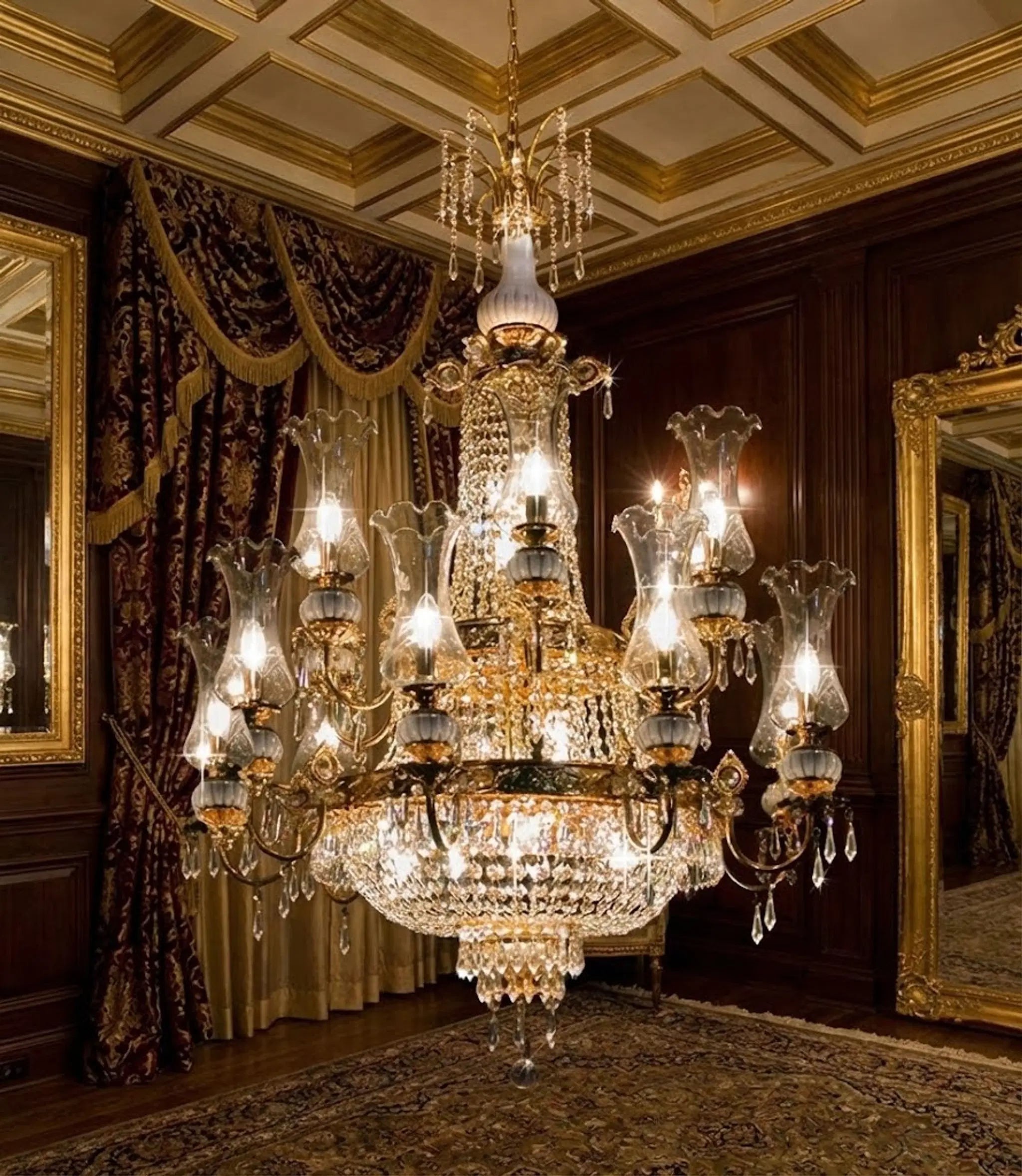 Crystal Chandelier - Multi-Tiered Gold Plated with Round & Teardrop Crystals - Elegant Candle Lighting