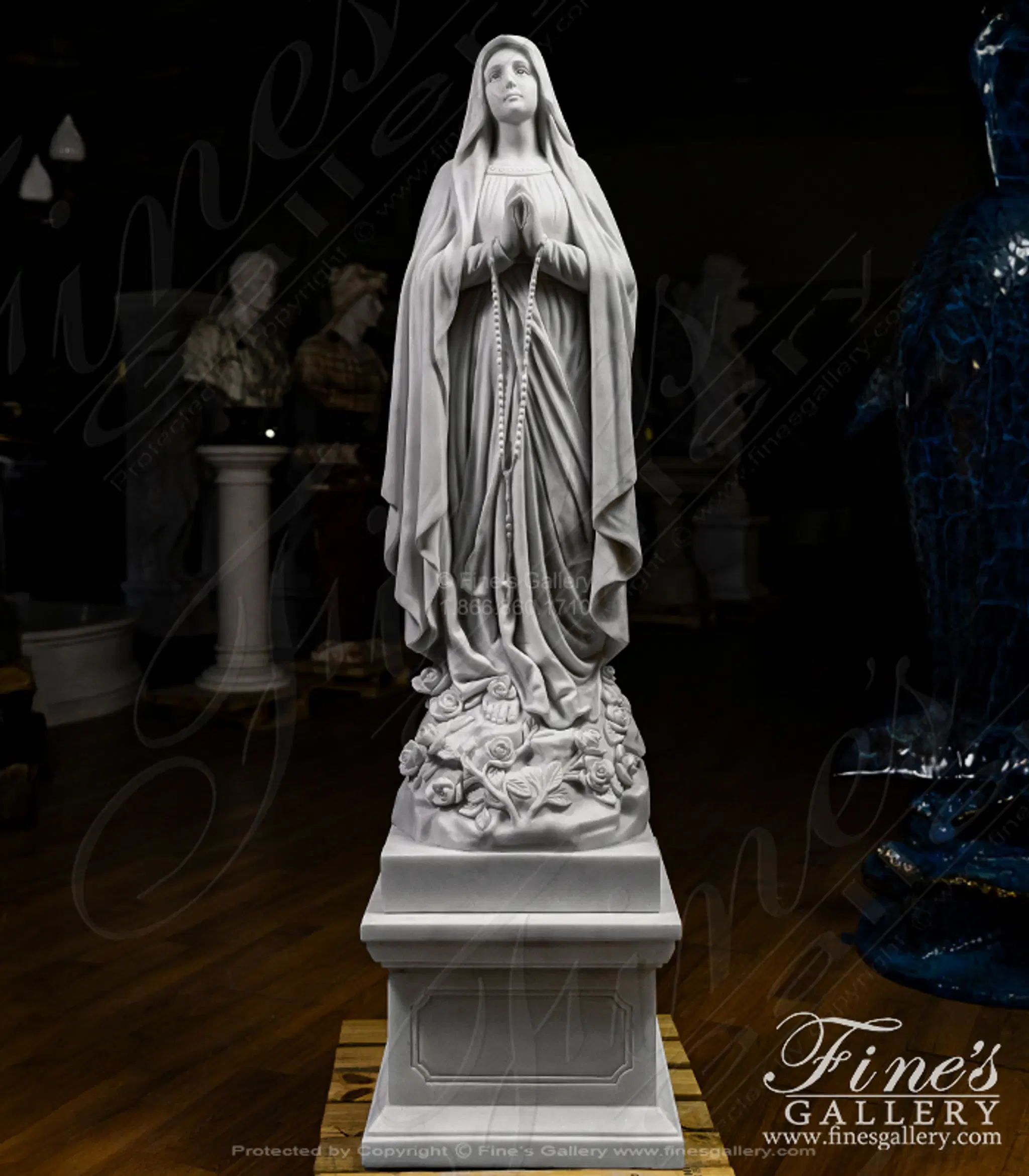 Our Lady of Lourdes in Statuary Marble. Optional 12" tall x 17" x 17" marble pedestal, available sold separately.