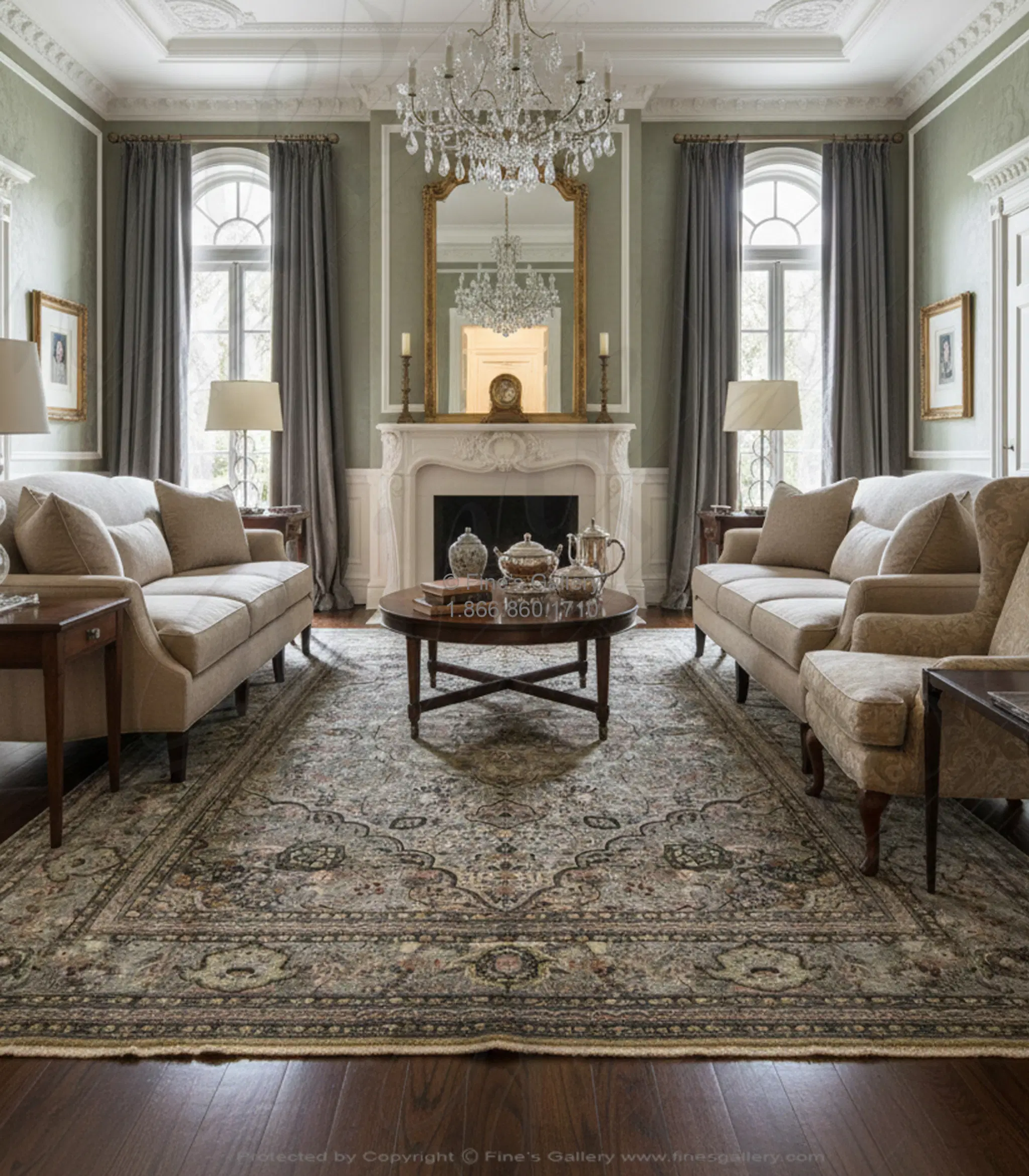 Exquisite Hand-Knotted Silk Area Rug in Ivory, Yellow and Blue with Chocolate Accents - Luxury Rectangle Carpet with Stunning Artisanal Craftsmanship for Living Room, Dining Room or Bedroom - Premium Quality Heirloom Piece from Fine's Gallery