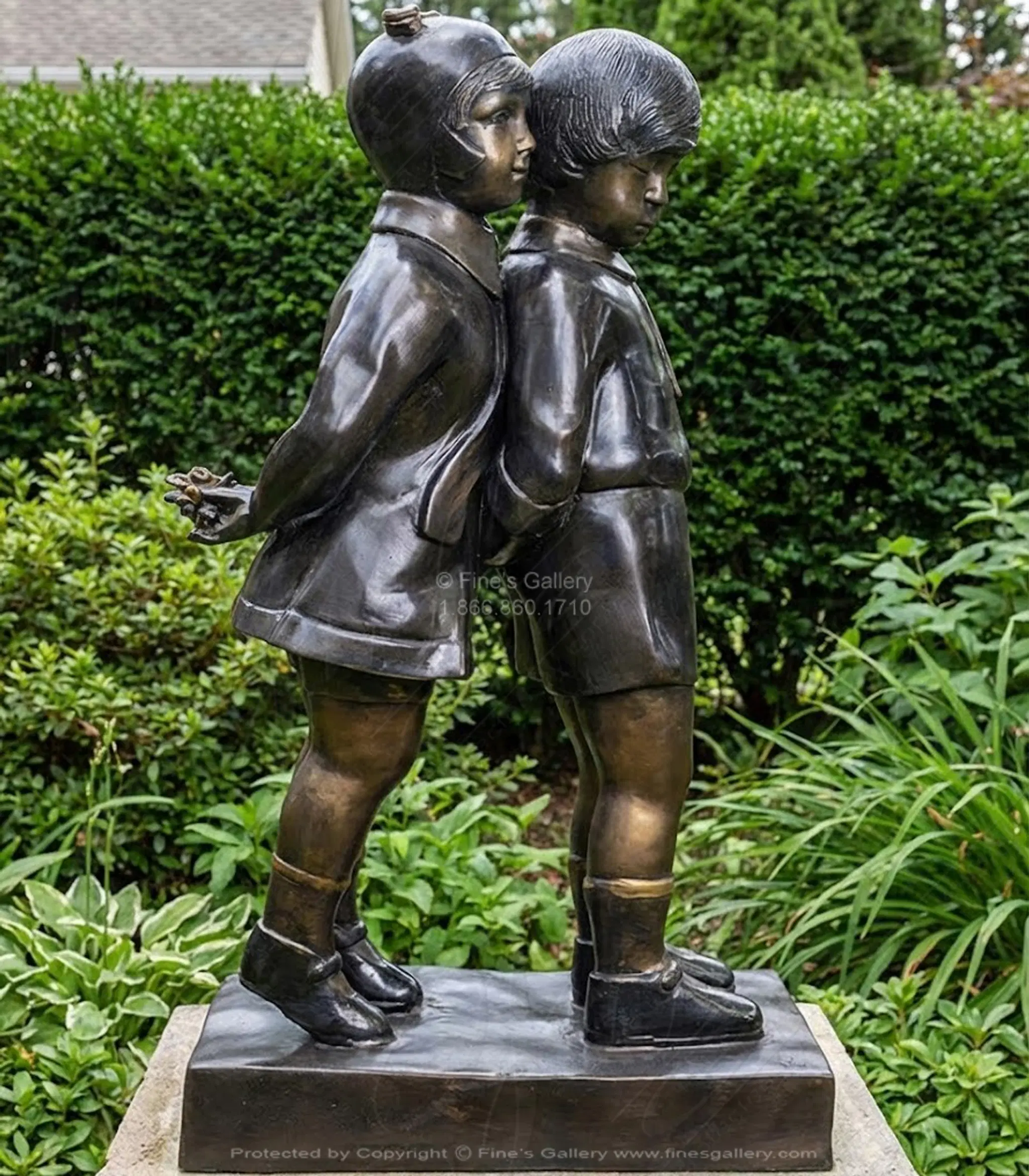 This bronze statue features two children in warm clothes lean against each other for support, with adorable expressions on their faces. So realistic is this young boy and girl statue, you will love displaying their beauty in your home.