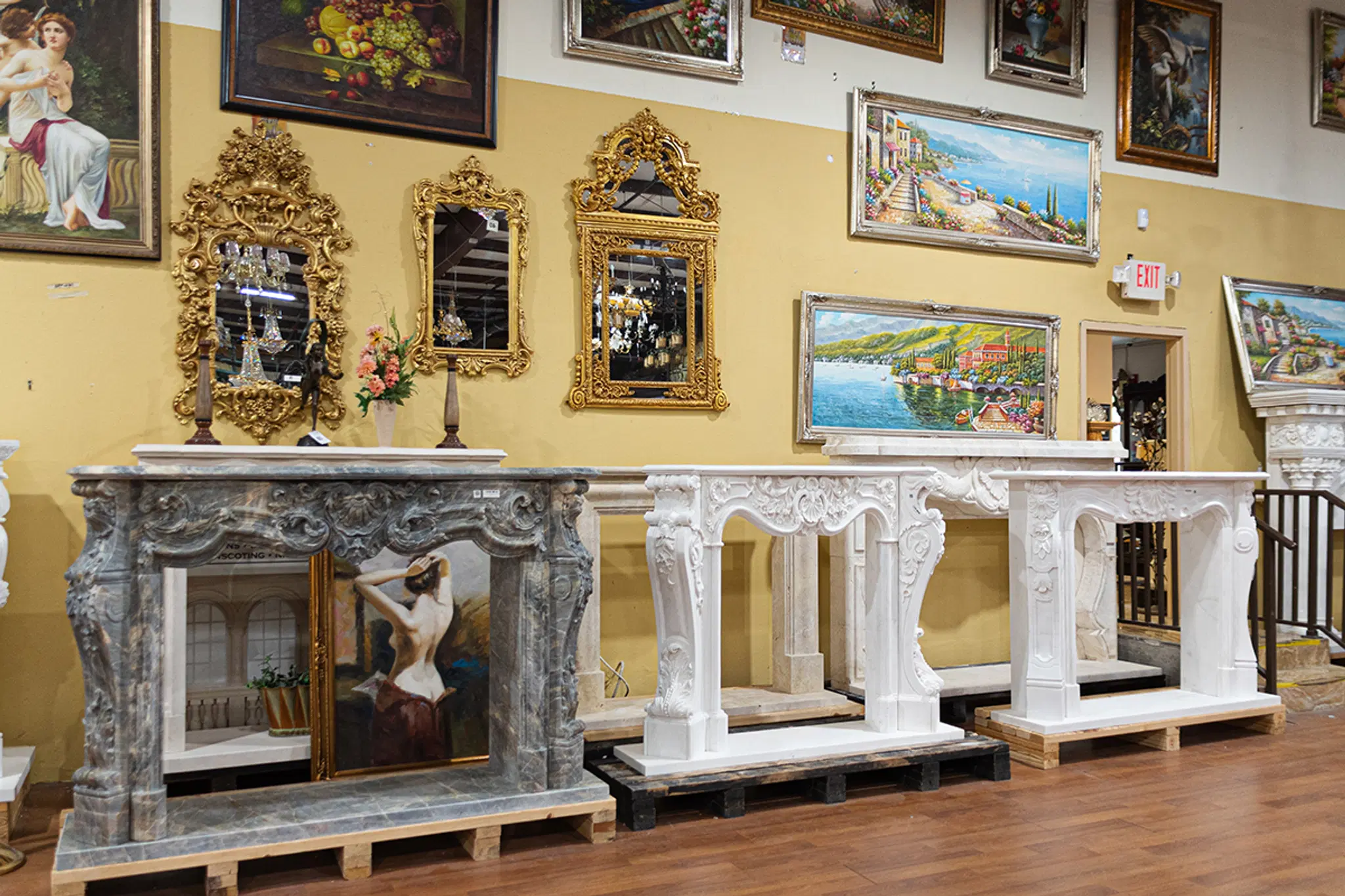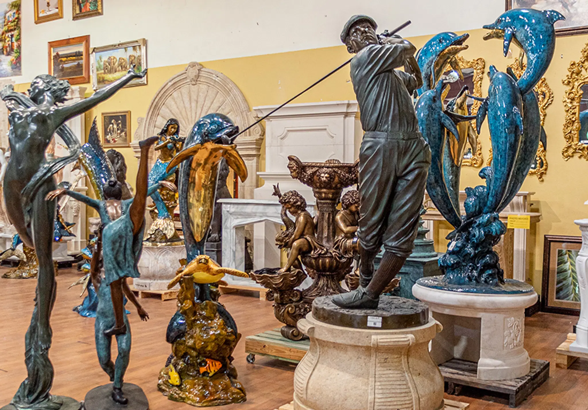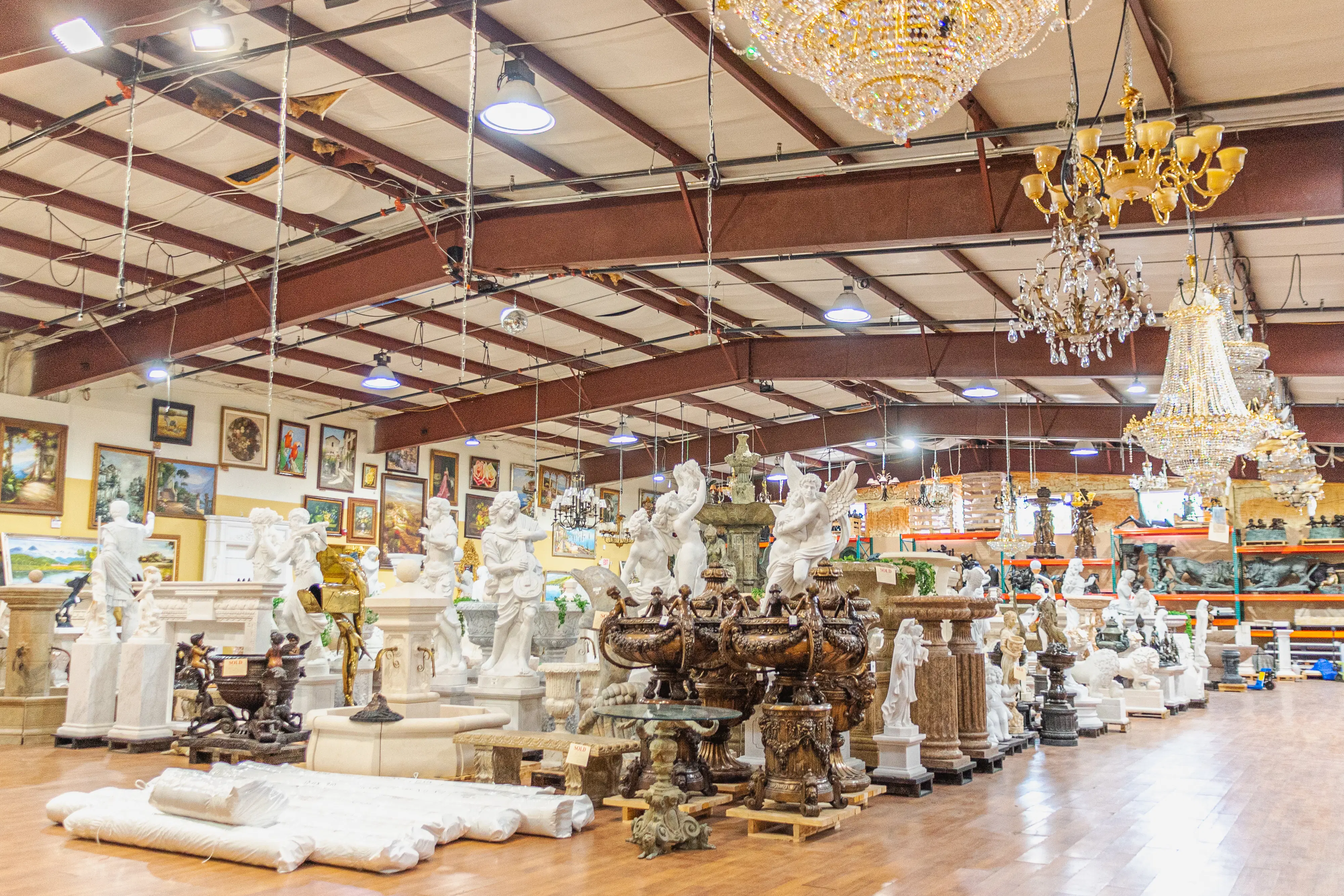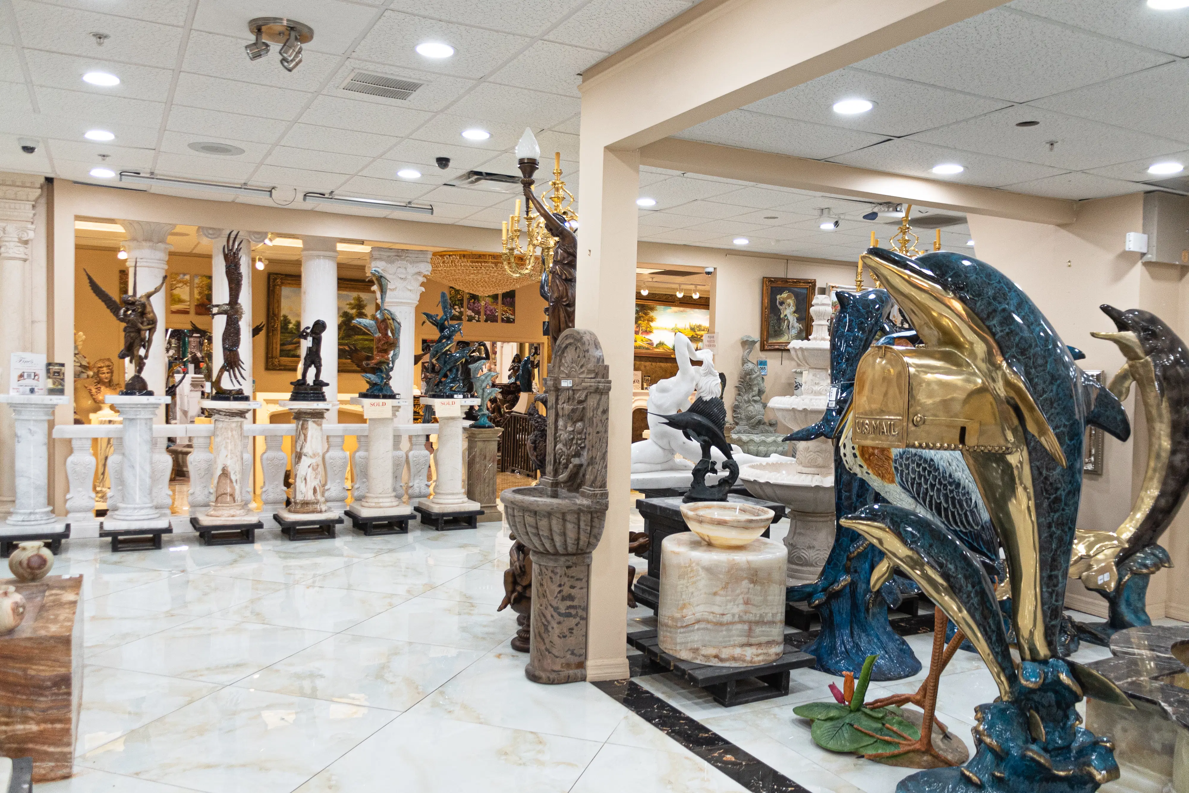 Showroom packed wall-to-wall with rare and unusual marble and bronze