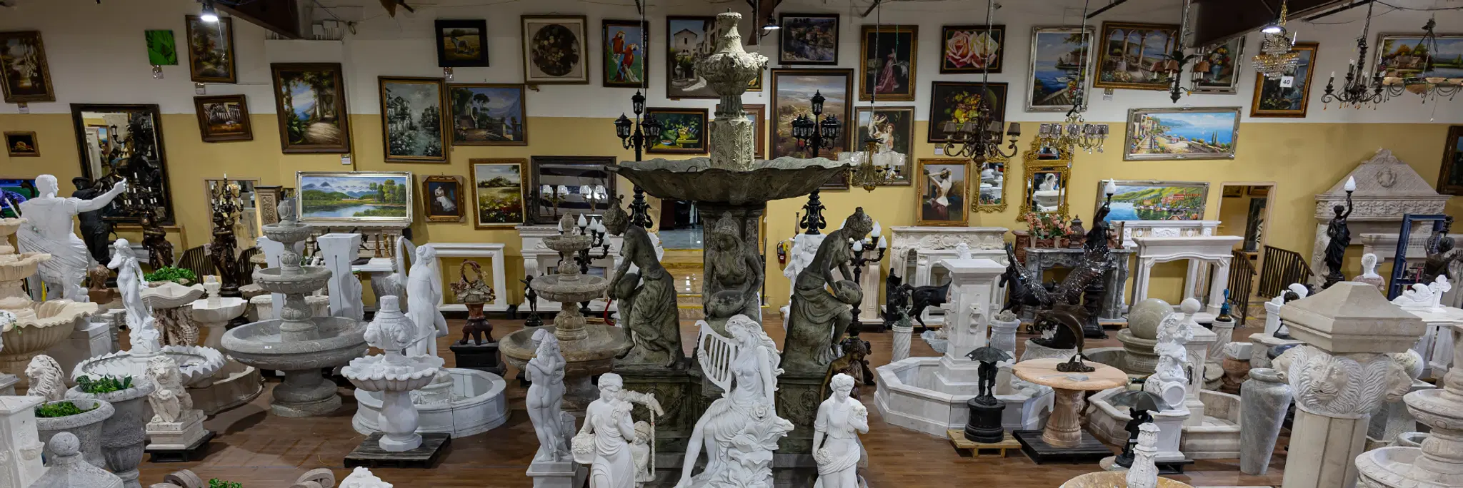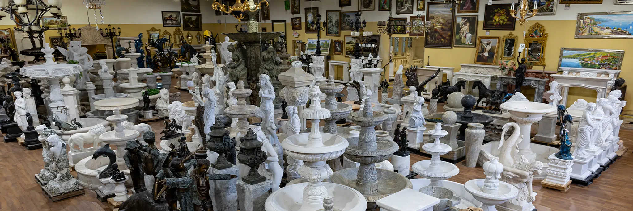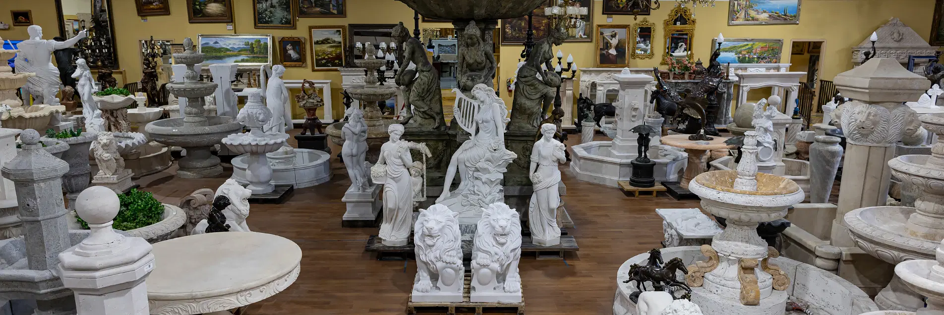 Walking into Fine’s Gallery feels like stepping into a European museum — only here, every masterpiece is available for acquisition. Thousands of hand-carved marble fountains, statues, fireplaces, and bronze sculptures fill the space from floor to ceiling, each one meticulously crafted by skilled artisans using time-honored techniques passed down through generations.