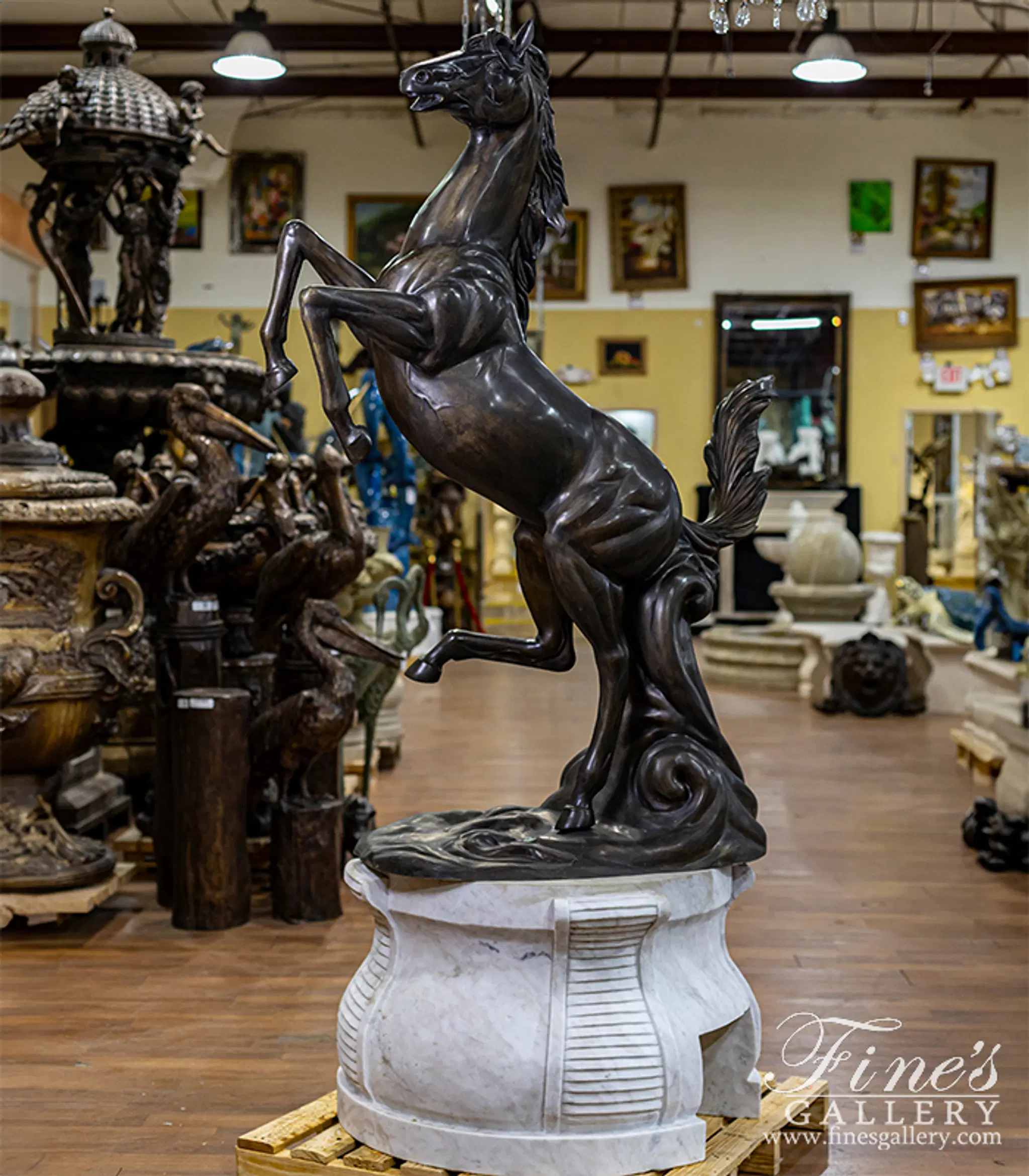 This true-to-life bronze sculpture depicts a wild stallion rearing upwards in a fit of passionate and sinewy beauty.