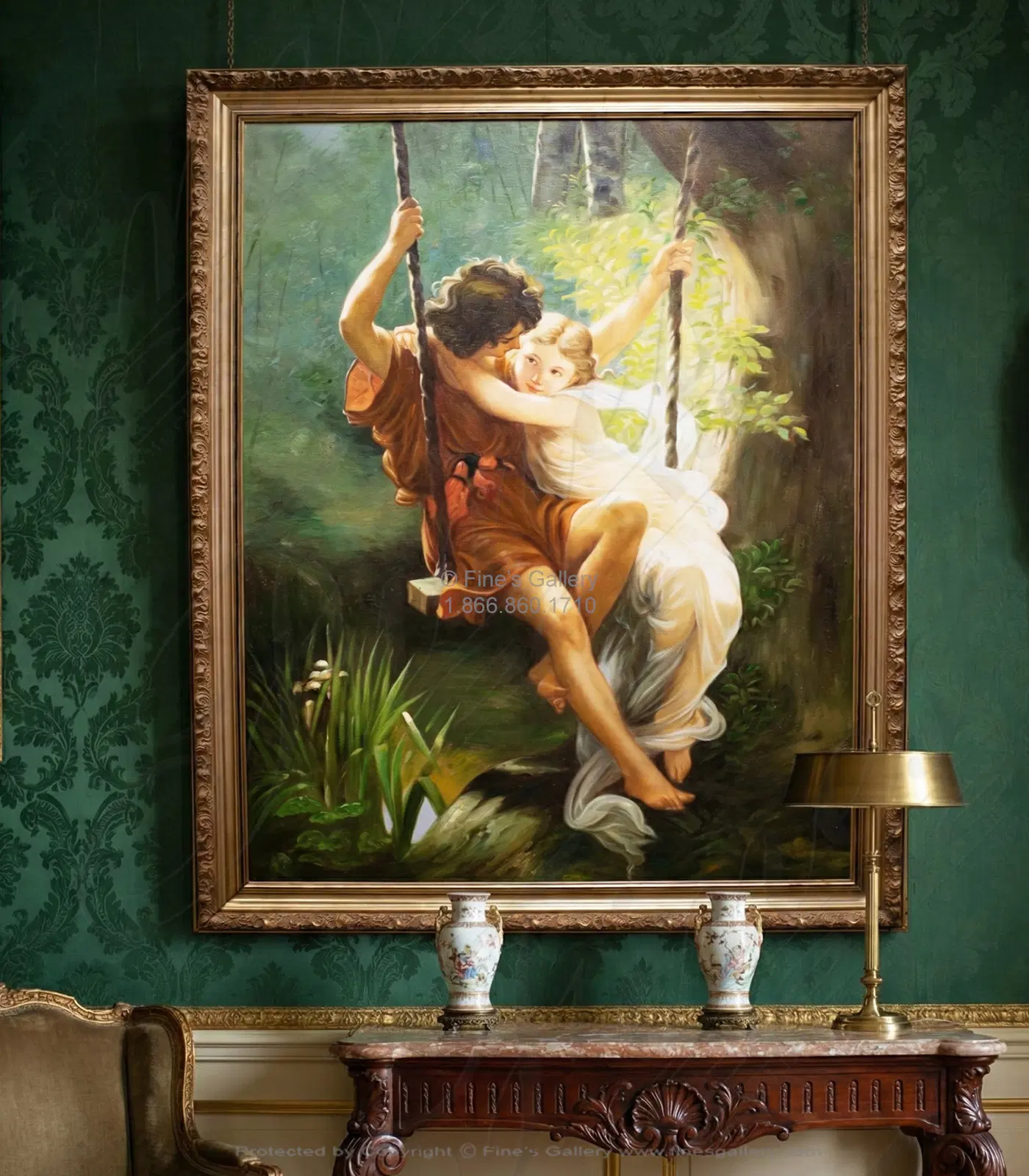 Art on canvas featuring artist Pierre-Auguste, "Young Lovers", a courting couple in landscape. A young girl in a white silk cloth dress and a young man even her the act of affection. Please call for additional information. Free Shipping .