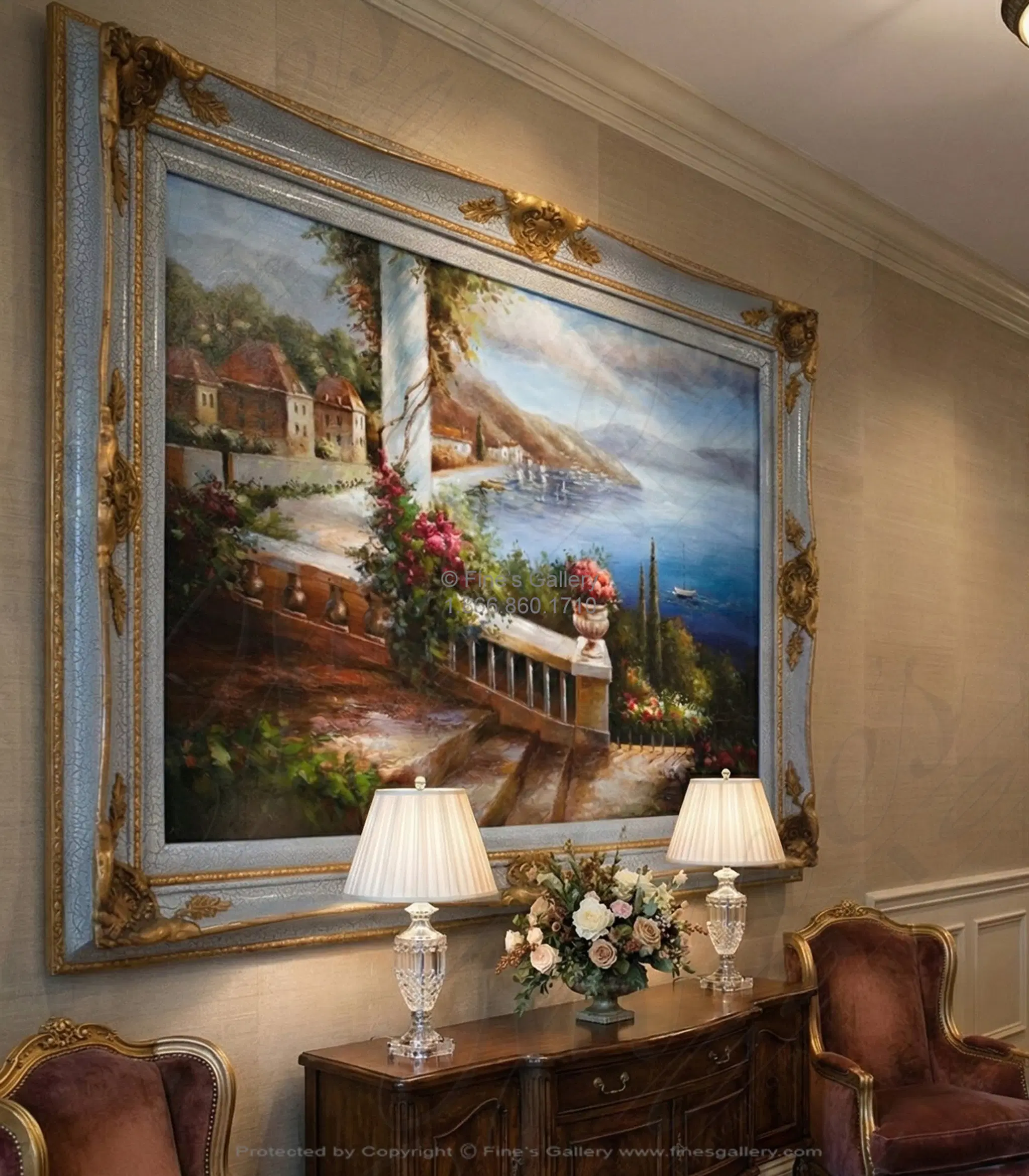 Canvas painting depicting the simplicity of home life by the sea, with the beauty of nature. Please call for additional information. Framed H:31 L: 42 Canvas H24 L 36 Free Shipping - Framed / Unframed - All Artwork copyrighted.