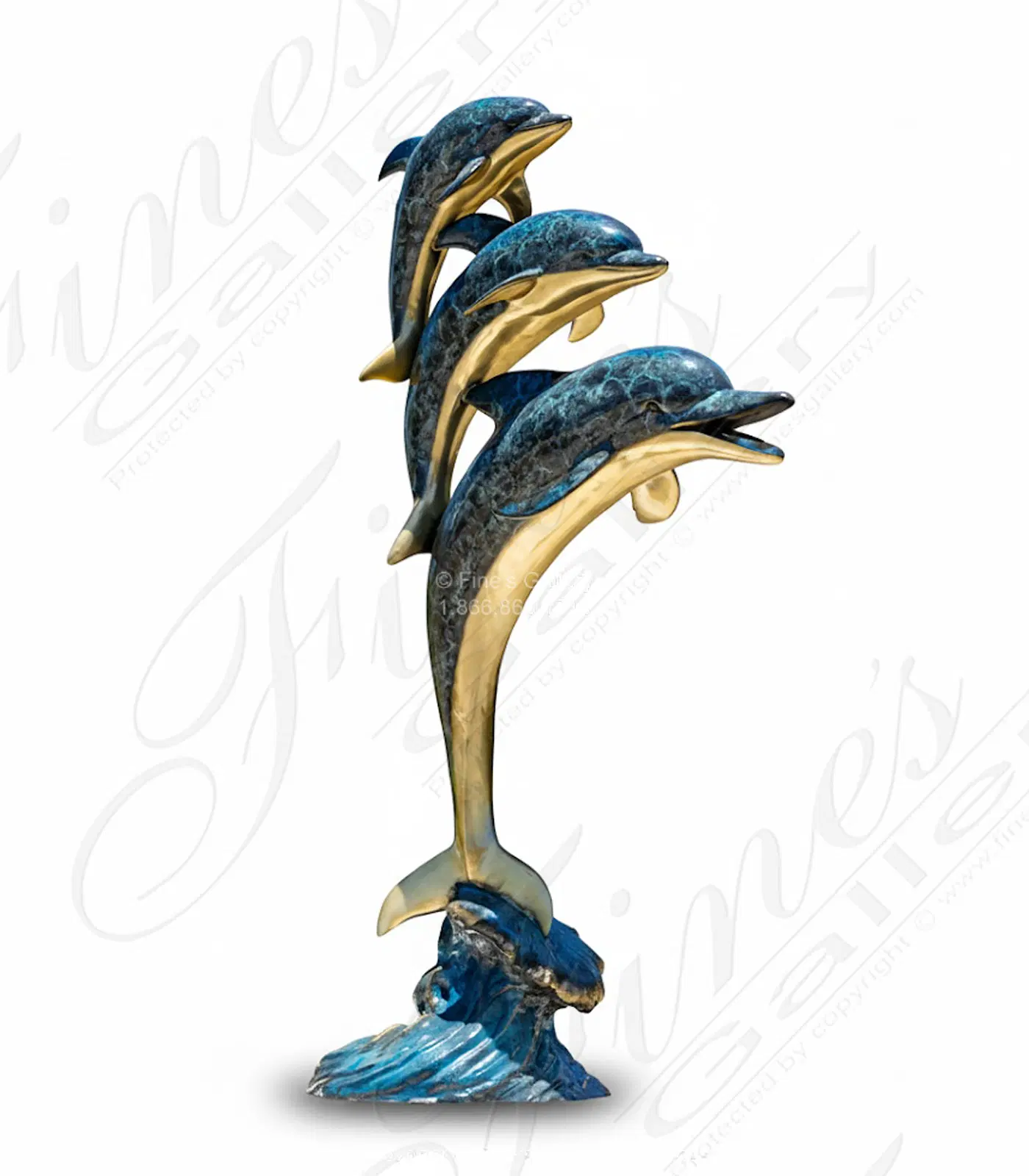 Three Dolphins Bronze Fountain with Brilliant Baked Enamel Finish - Luxury Garden Water Feature - BF-1430