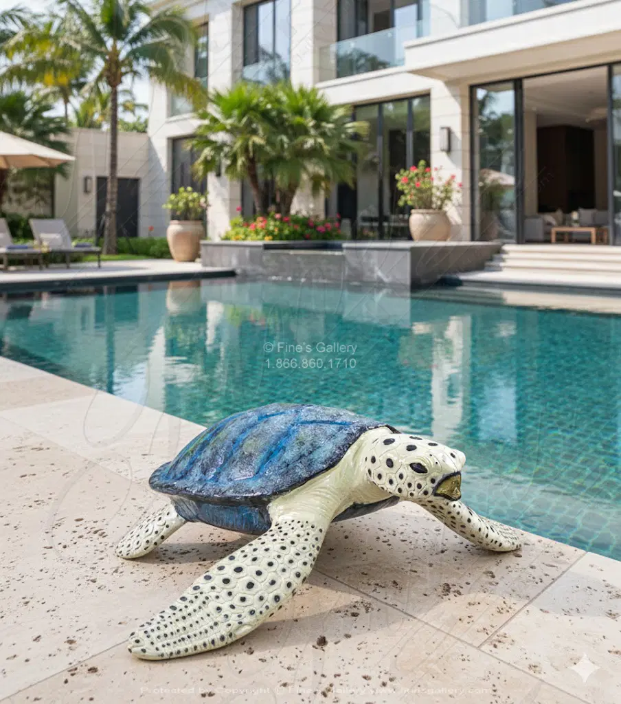 28" Sea Turtle in Enameled Bronze