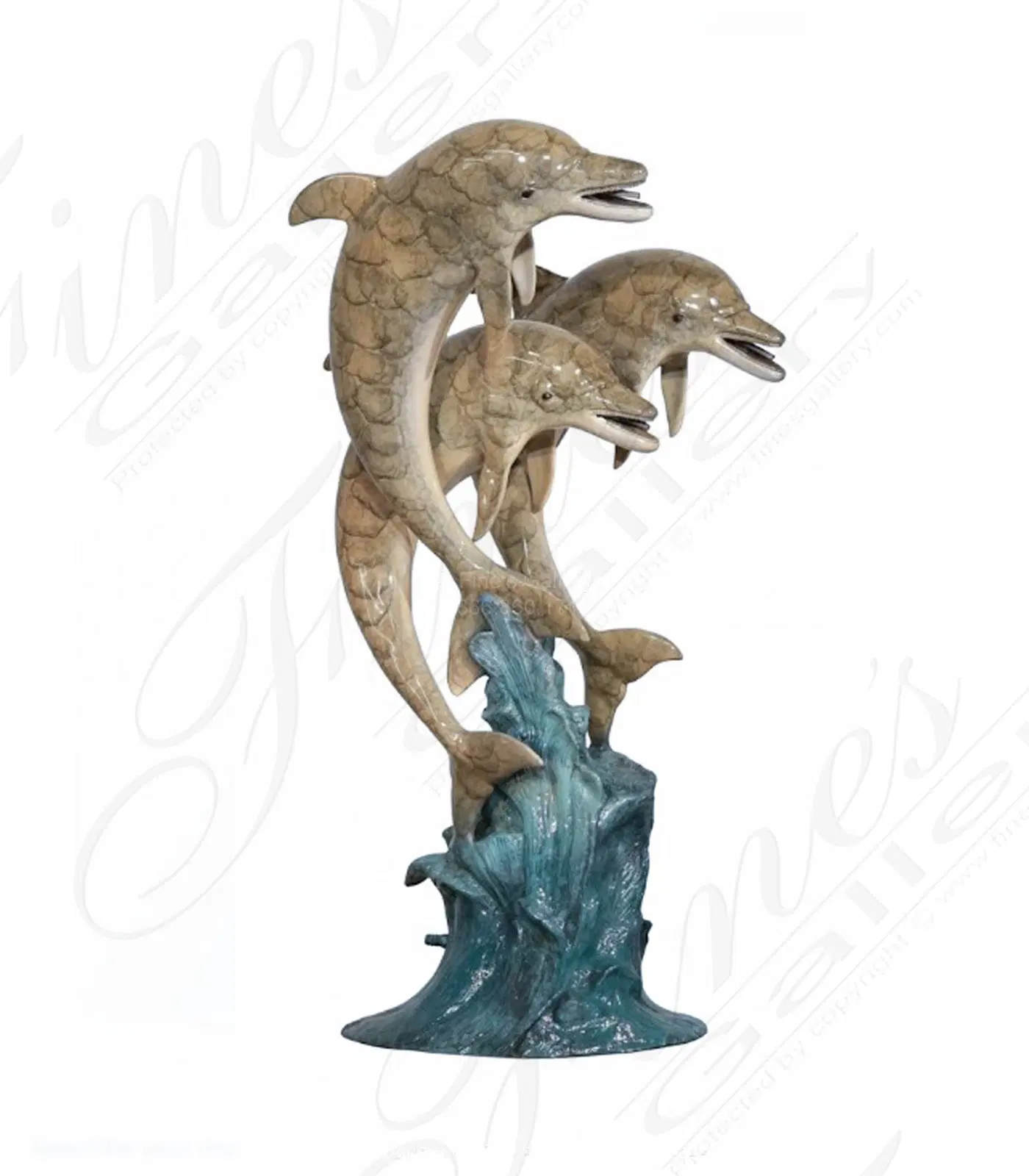 Three Bronze Dolphins Fountain in Brilliant Enamel Bronze