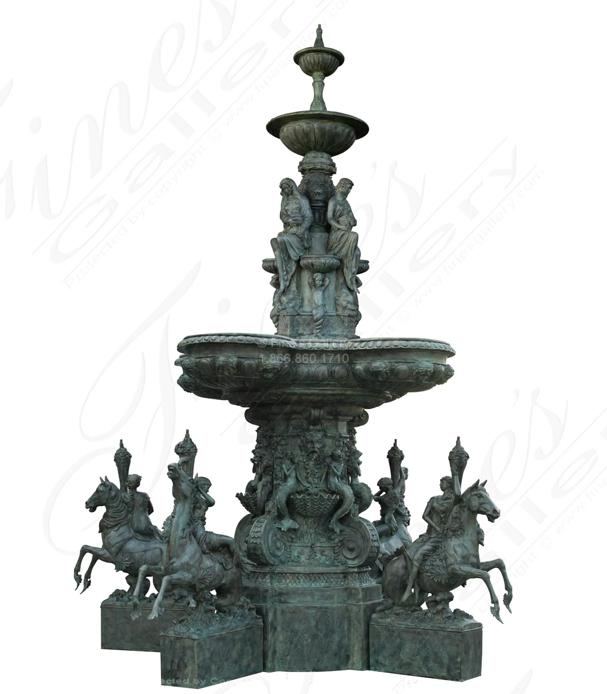 Elaborate Monumental Fountain in Patina Bronze