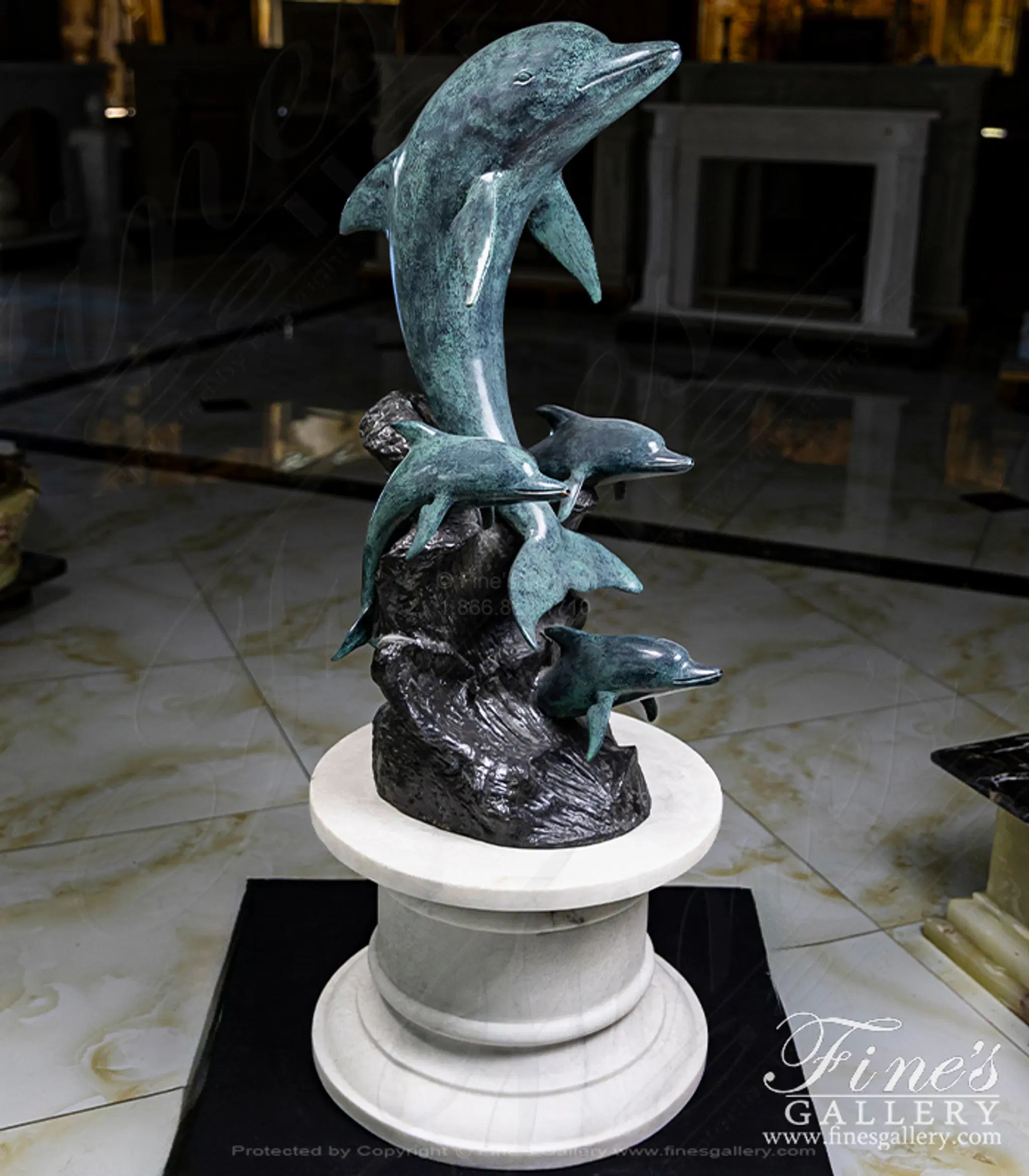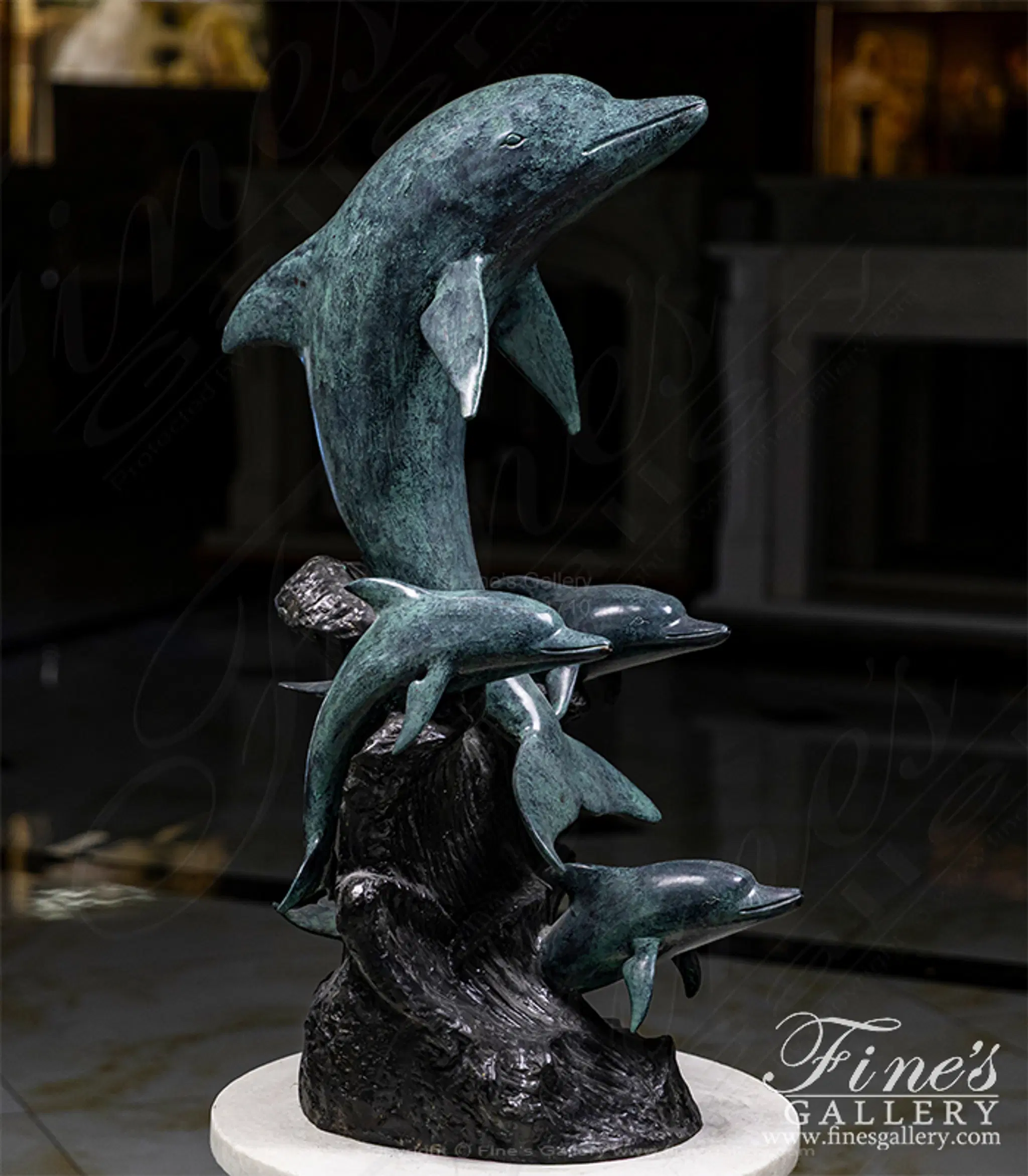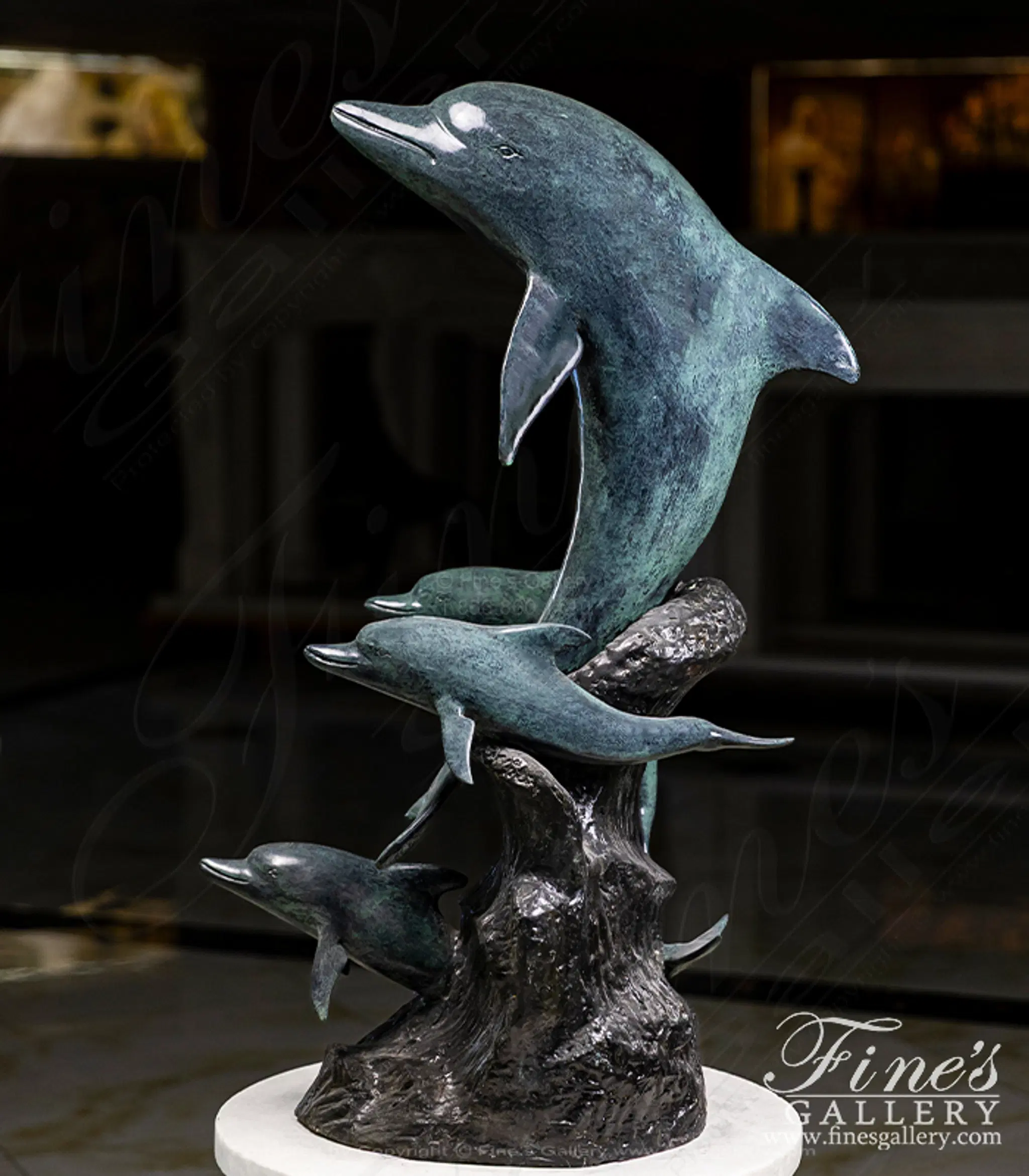 Place this lovely Bronze Dolphin Family in the center of a pool for a stunning effect your family will love. Enjoy the playfulness of this beautiful creature, or simply relax to the peaceful sound of falling water. Contact us by phone today.