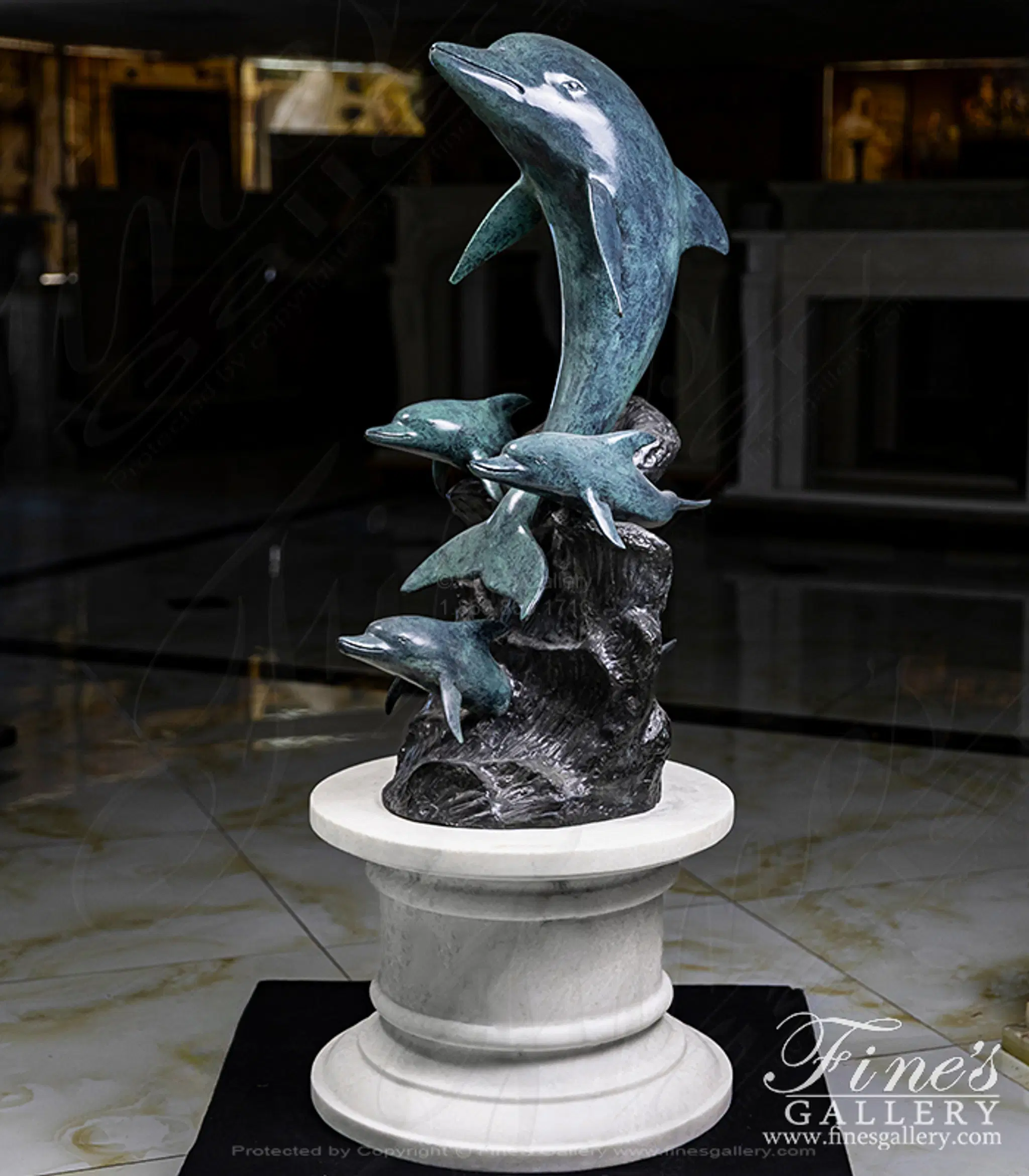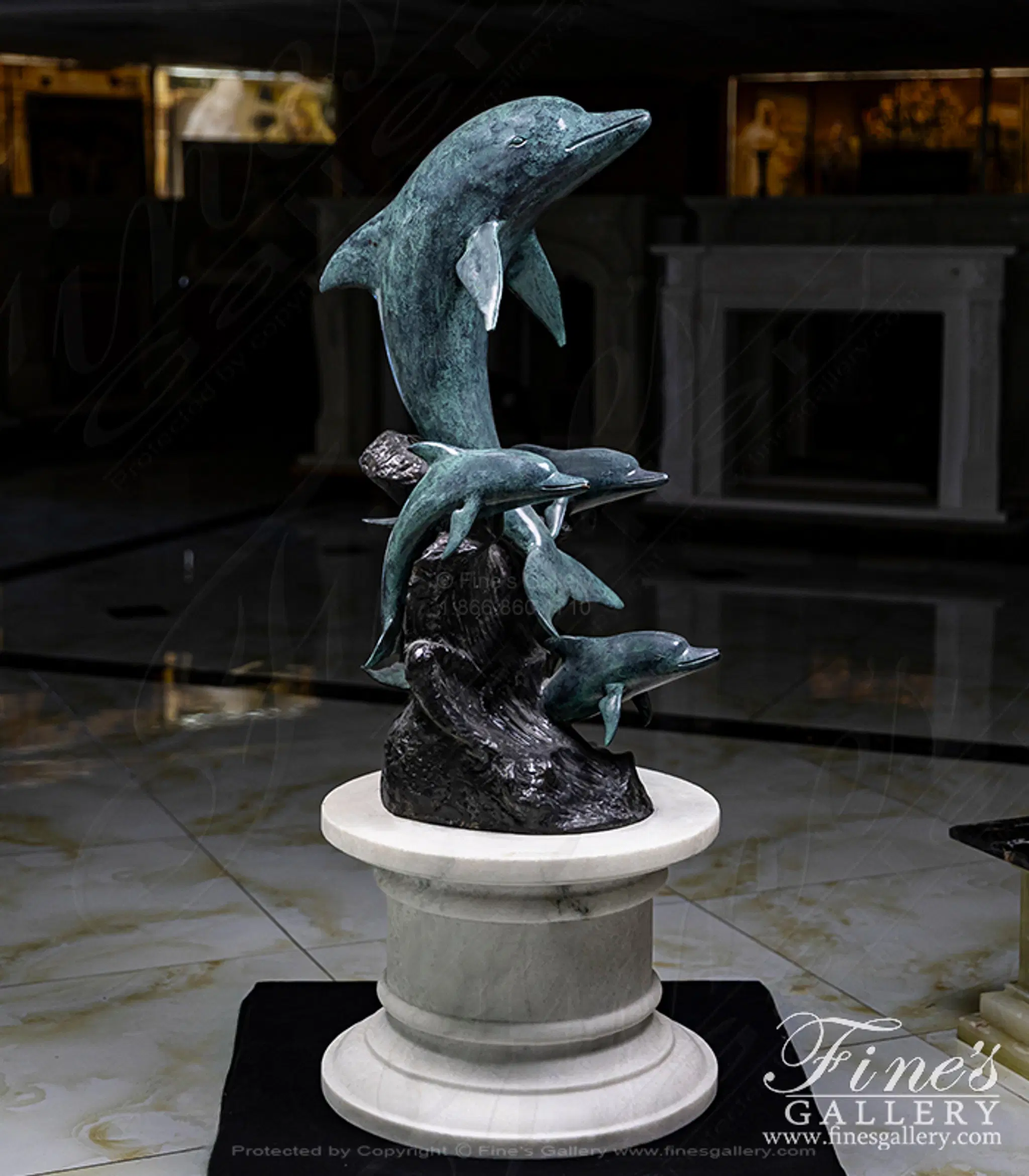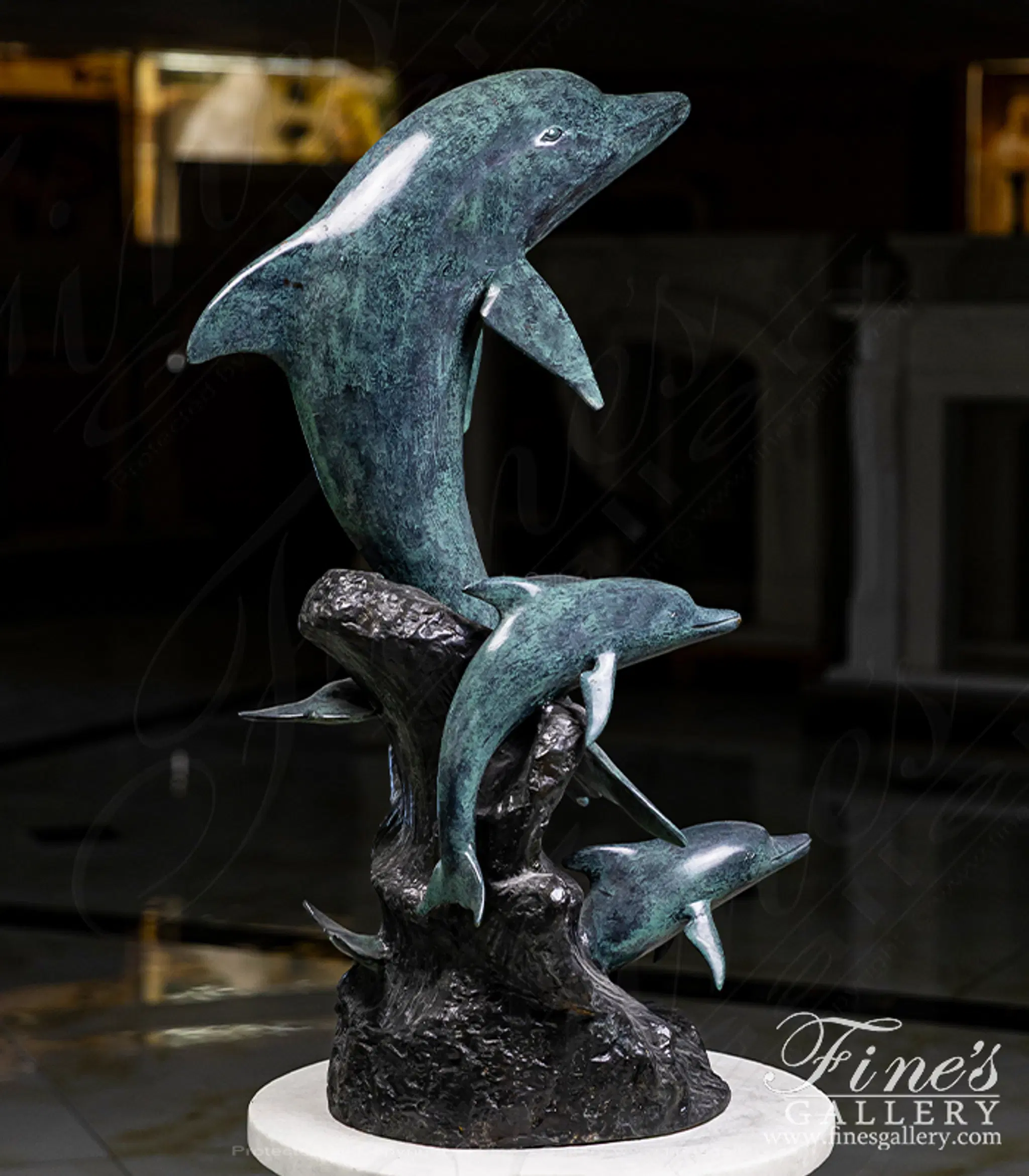 Place this lovely Bronze Dolphin Family in the center of a pool for a stunning effect your family will love. Enjoy the playfulness of this beautiful creature, or simply relax to the peaceful sound of falling water. Contact us by phone today.