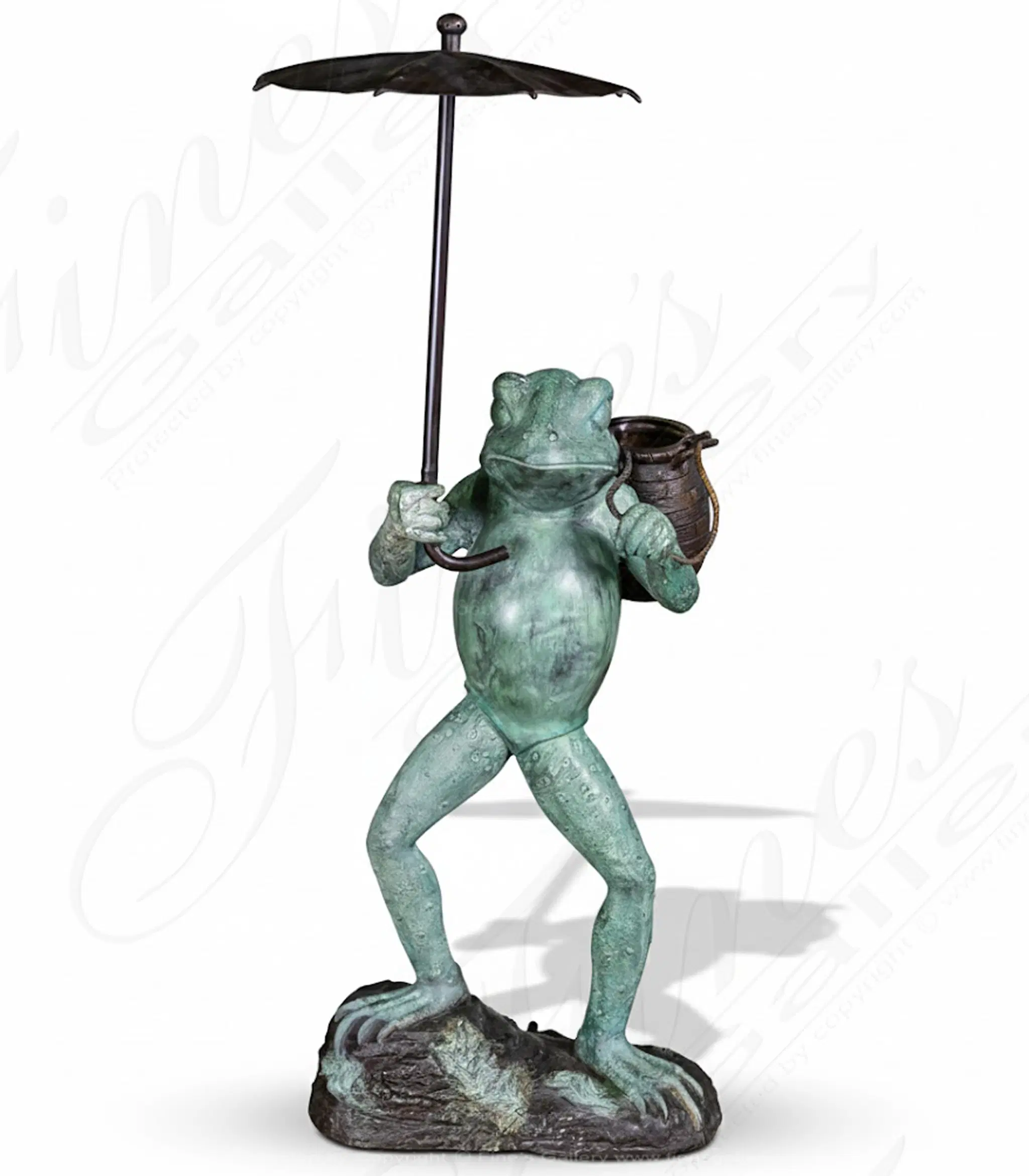 Umbrella Frog Bronze Fountain - 53" Tall Patina Bronze Garden Sculpture - Outdoor Water Feature - BF-263