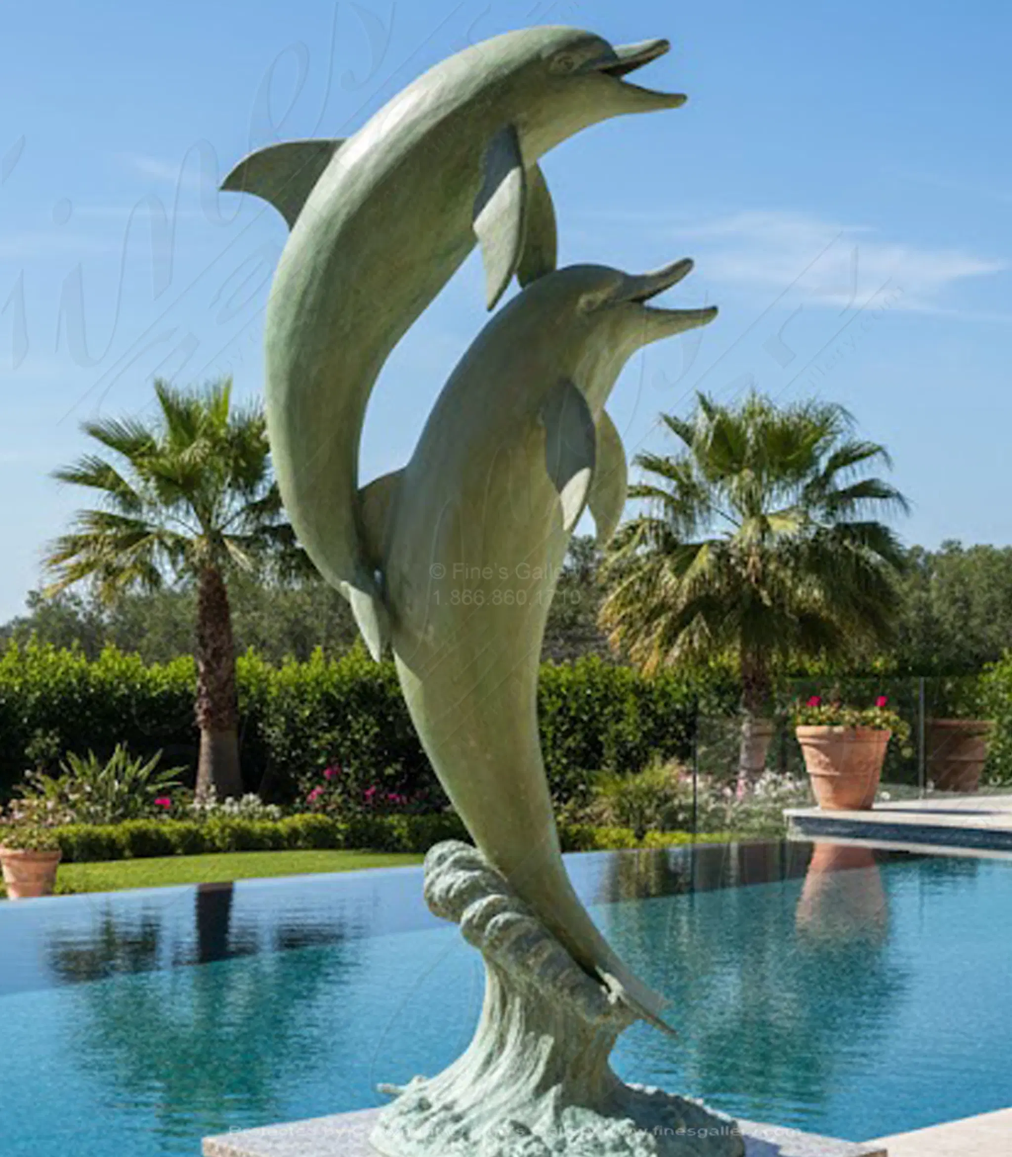 Leaping joyfully with happy smiles, these dolphins will remind you of playing in the ocean. Made from gorgeous green bronze, they display incredible realism. Optional catch basin and water jets available sold separately.