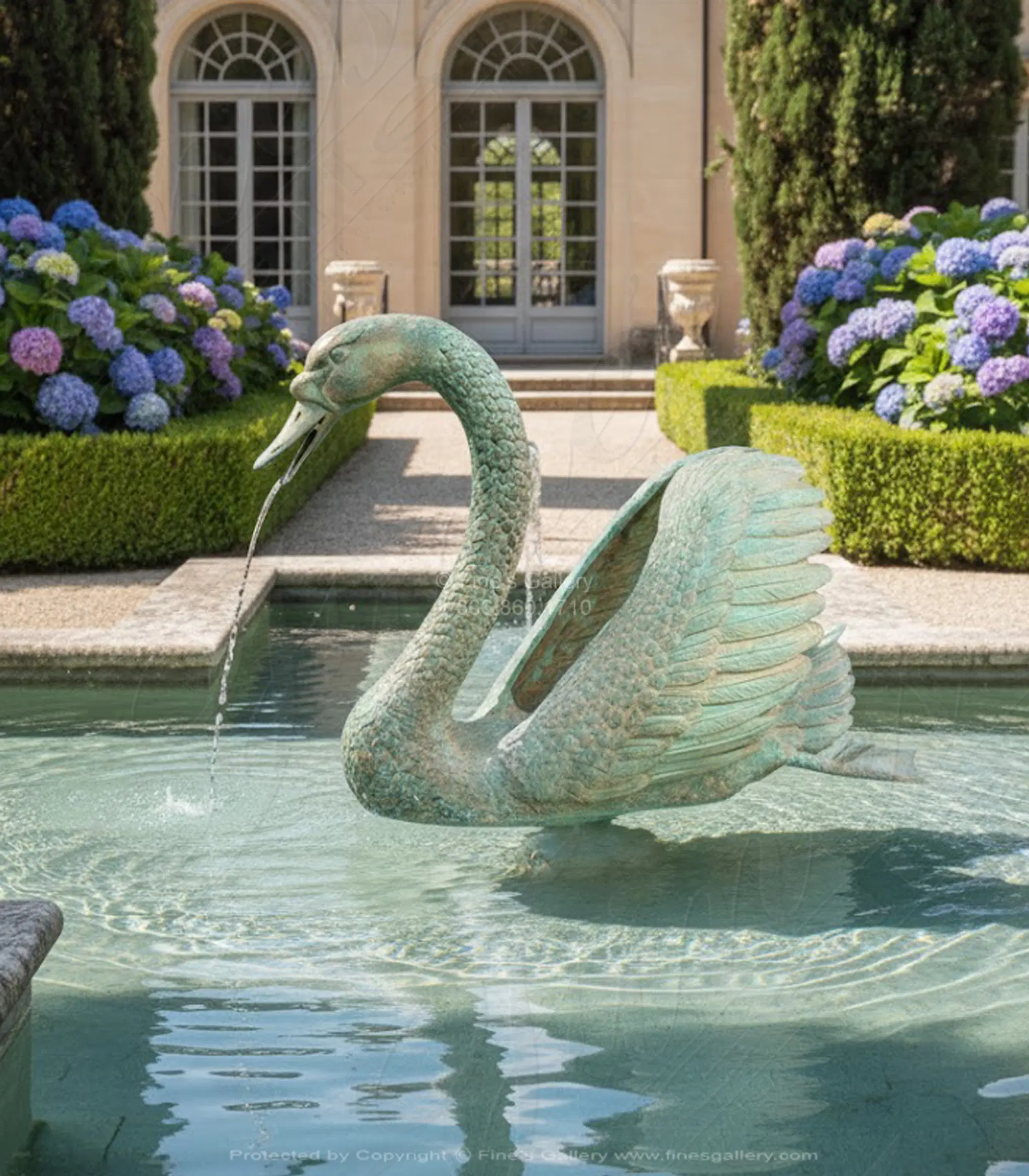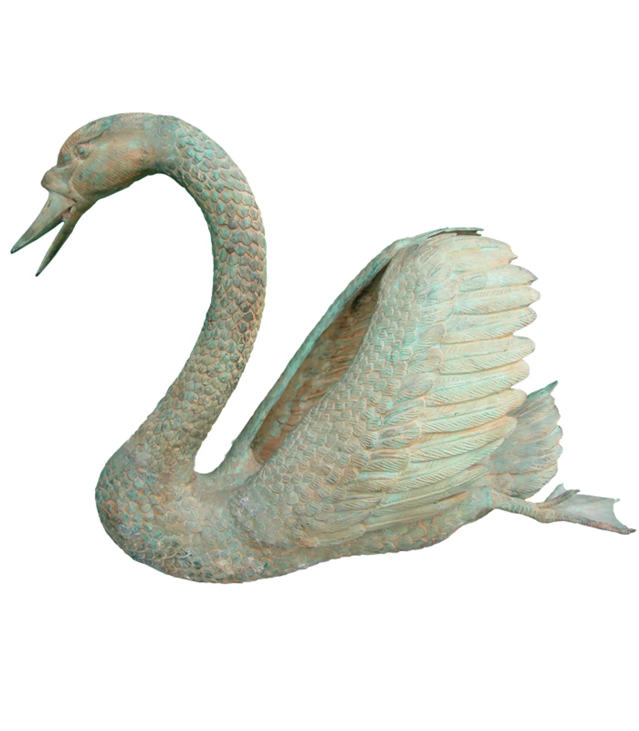 Graceful Swan Bronze Fountain with Antique Patina Finish - Elegant Outdoor Water Feature for Garden and Home Decor - Meticulously Detailed Realistic Design in Soft Bronze Tones - Durable Weather-Resistant Art Piece - Model BF-438 by Fine's Gallery
