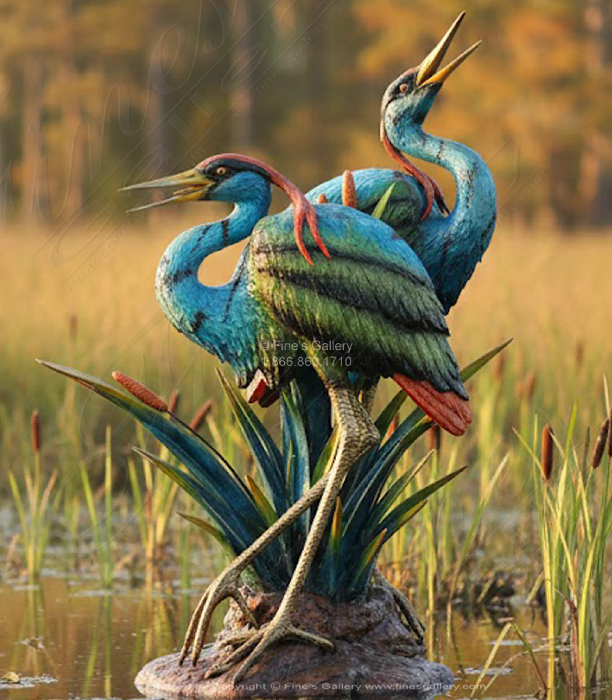 Blue Green Bronze Herons Fountain