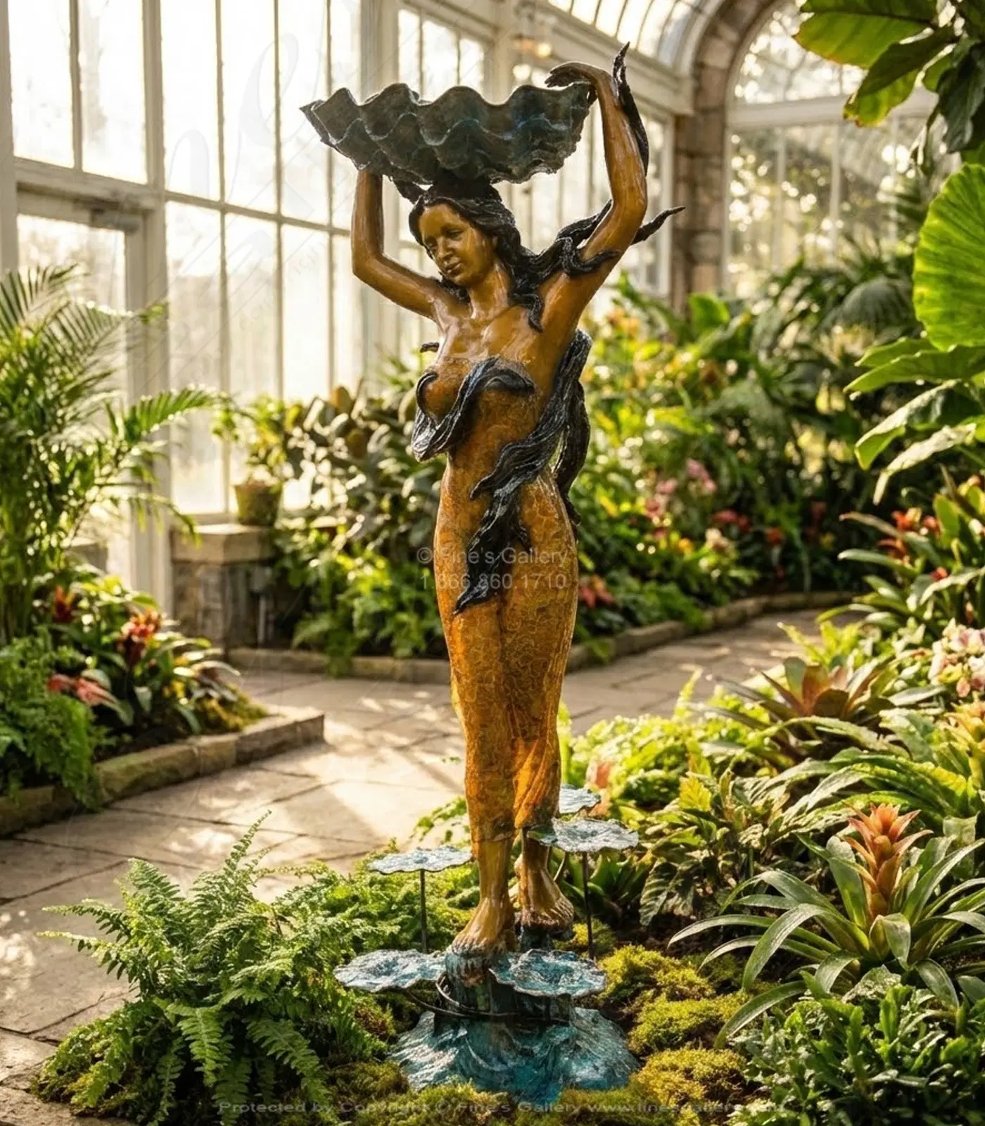 Lady Holding Shell Bronze Fountain - Brilliant Colored Outdoor Garden Statue Sculpture