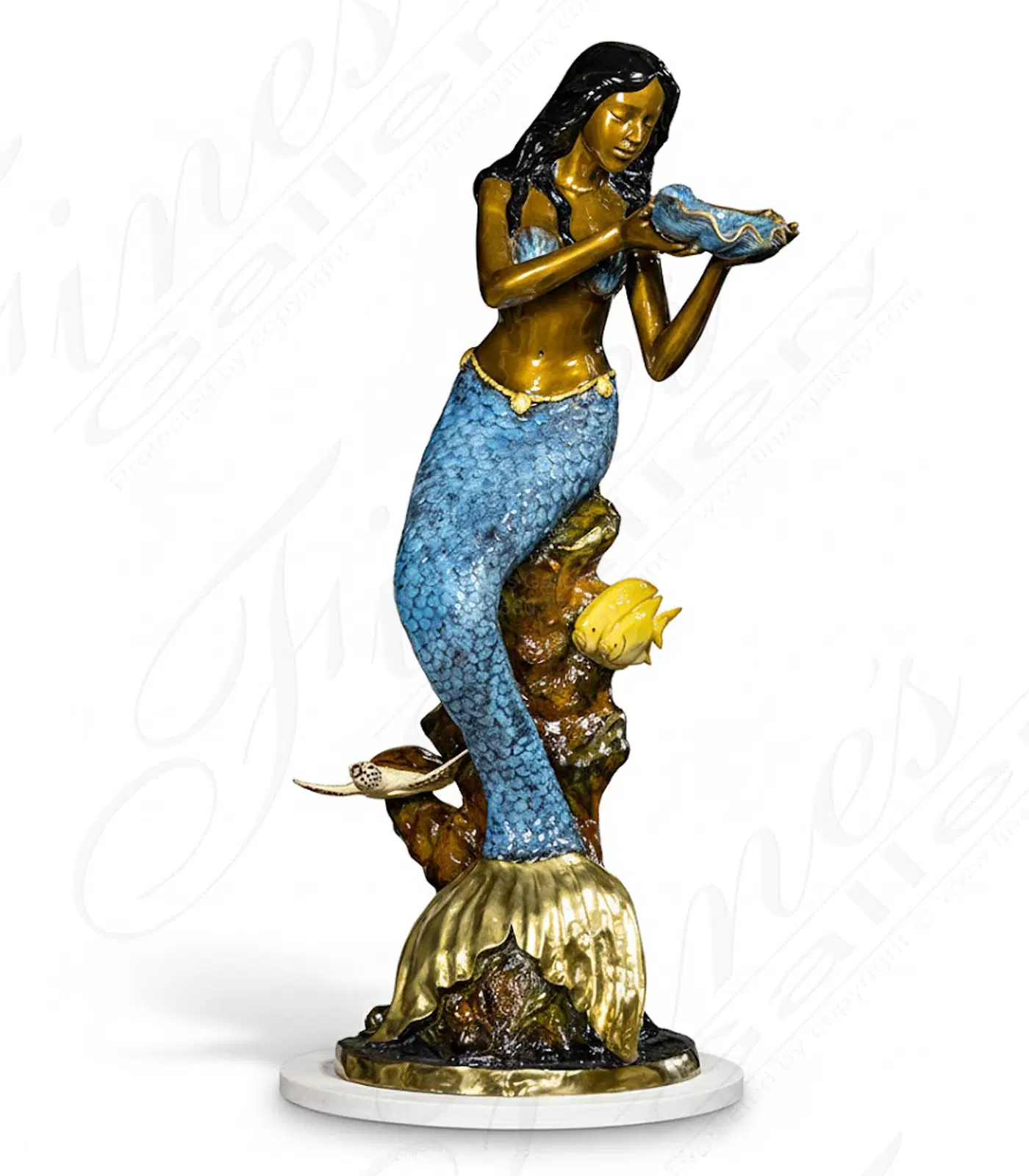 Bronze Mermaid Fountain with Shell Cascade - Outdoor Garden Water Feature with Clownfish and Sea Turtle - BF-715