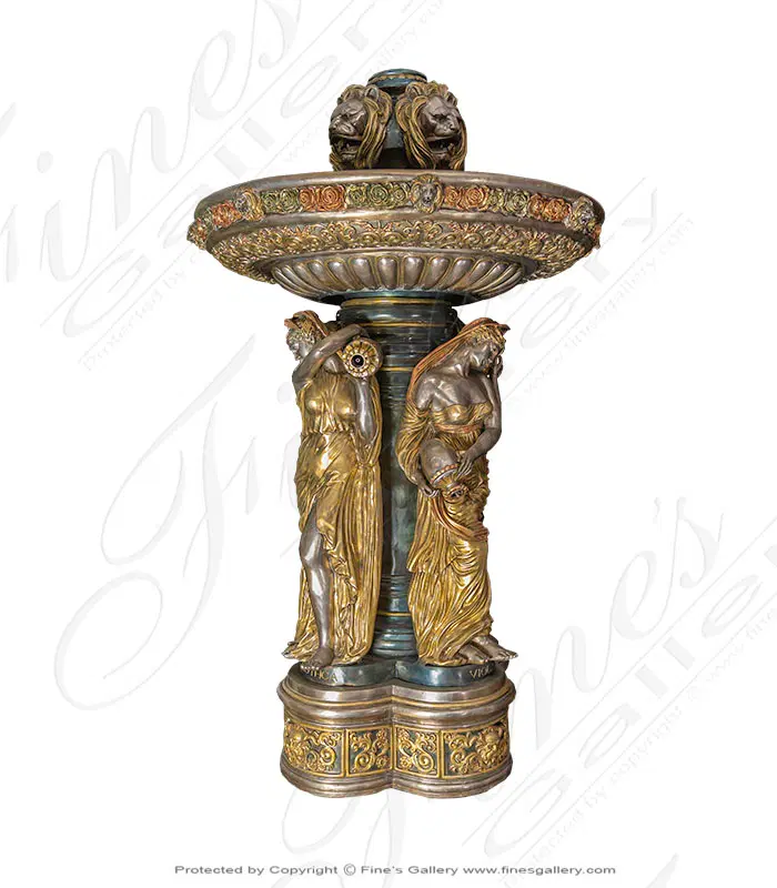 Silver and Gold Lions and Maidens Bronze Fountain! Marquina marble pool basin, base & stainless water jets available sold separately.