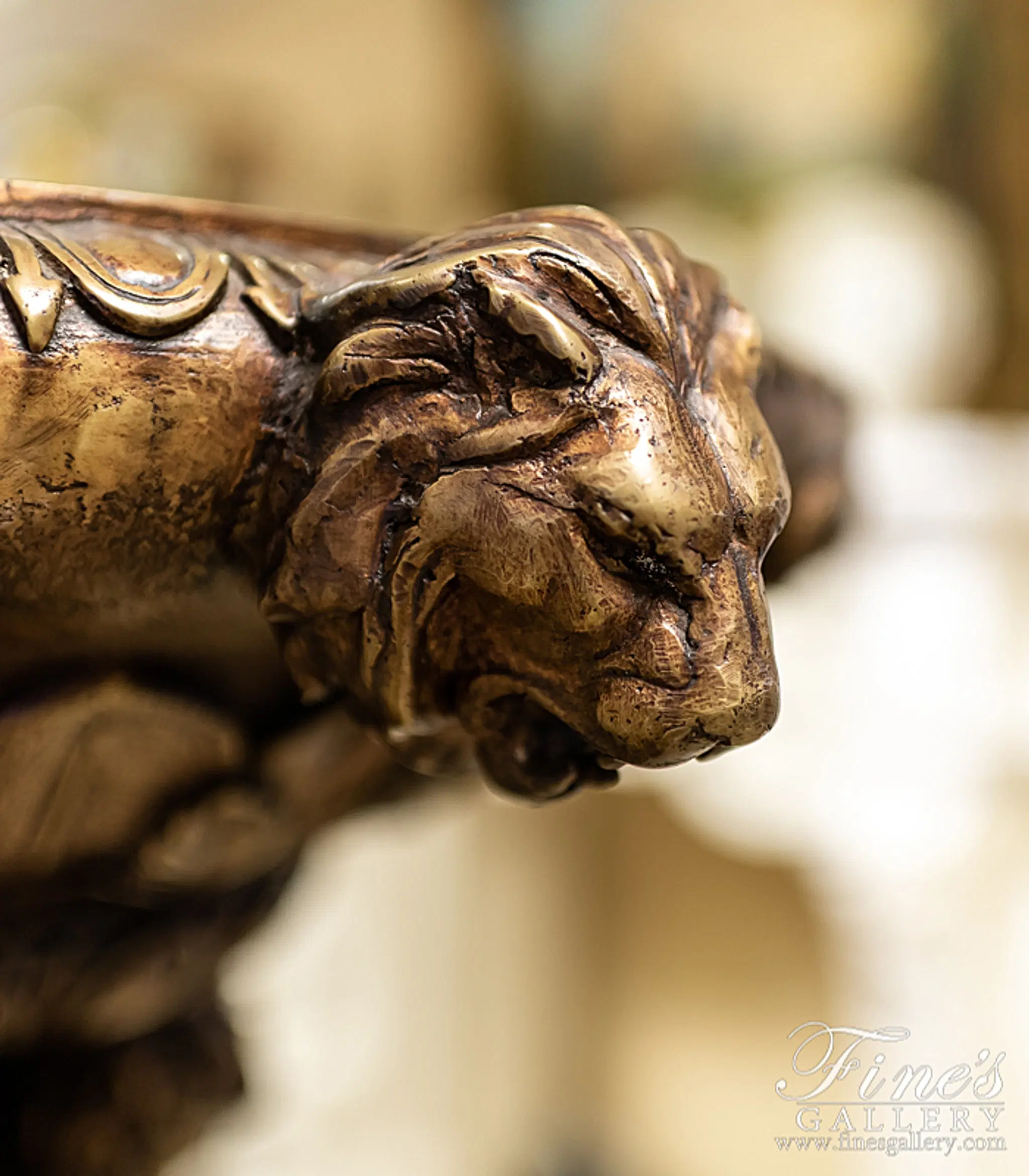 Bronze Utopia Gardens Fountain features floral garlands, children holding wreaths and lion head spouts. Incorporate inside one of our elegant natural stone pool basins.