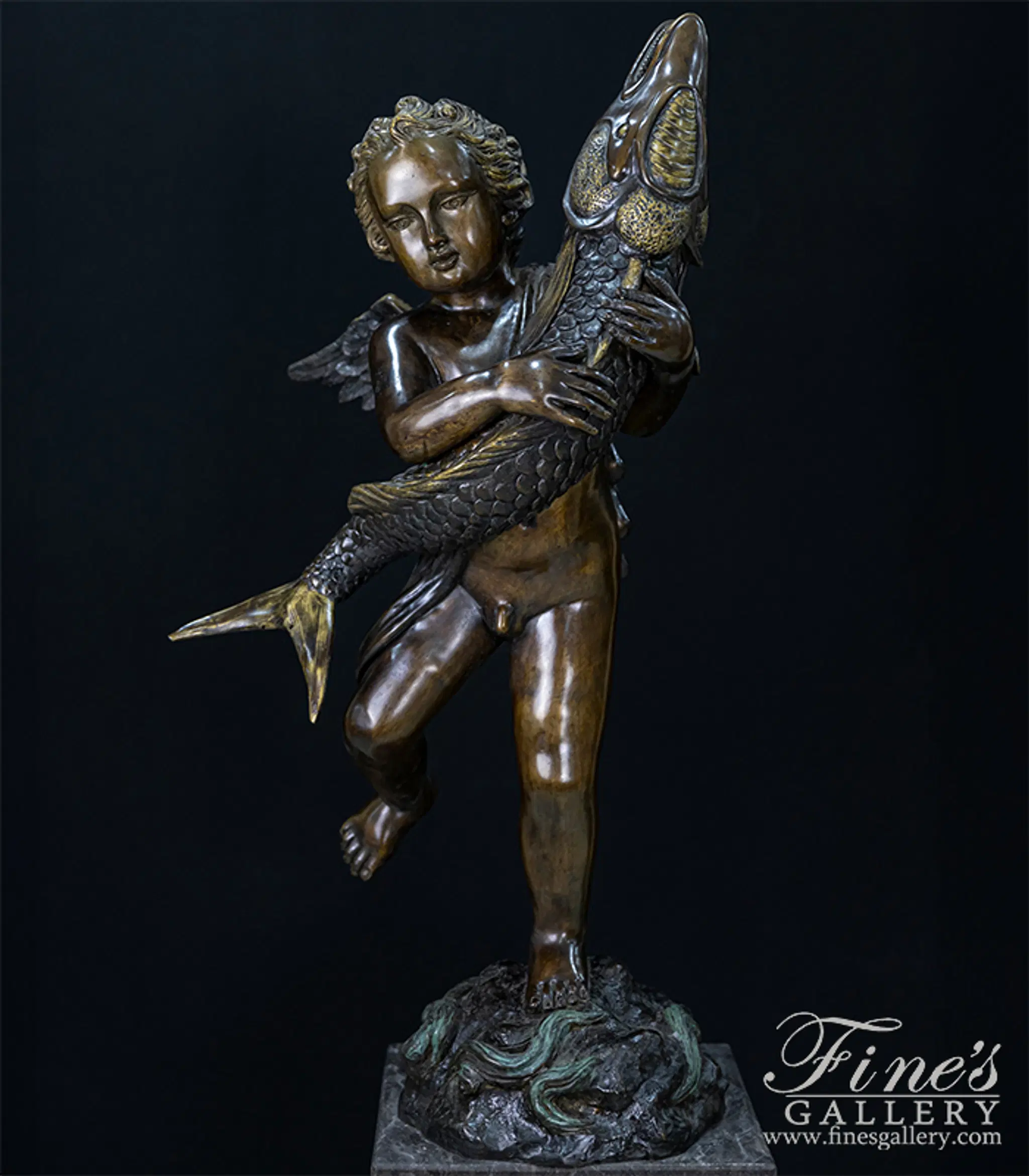 Bronze Cherub with Fish Fountain Finial - Elegant Garden Water Feature - Outdoor Decor - BF-868