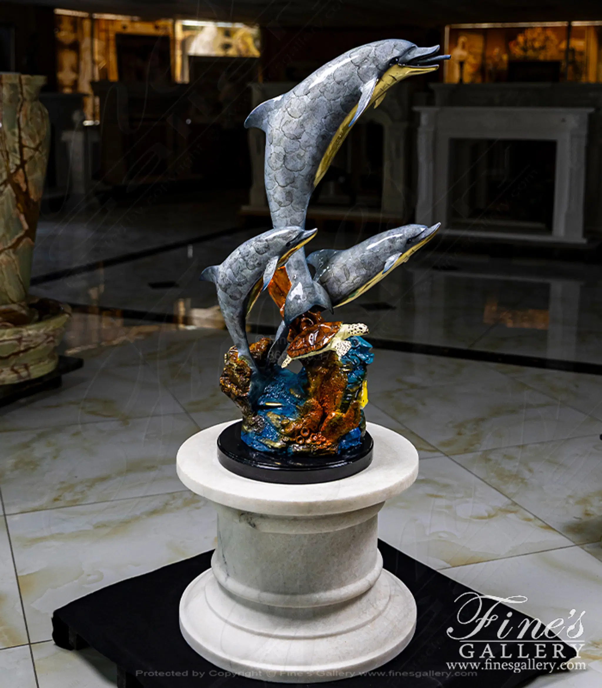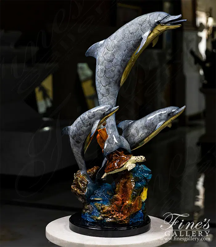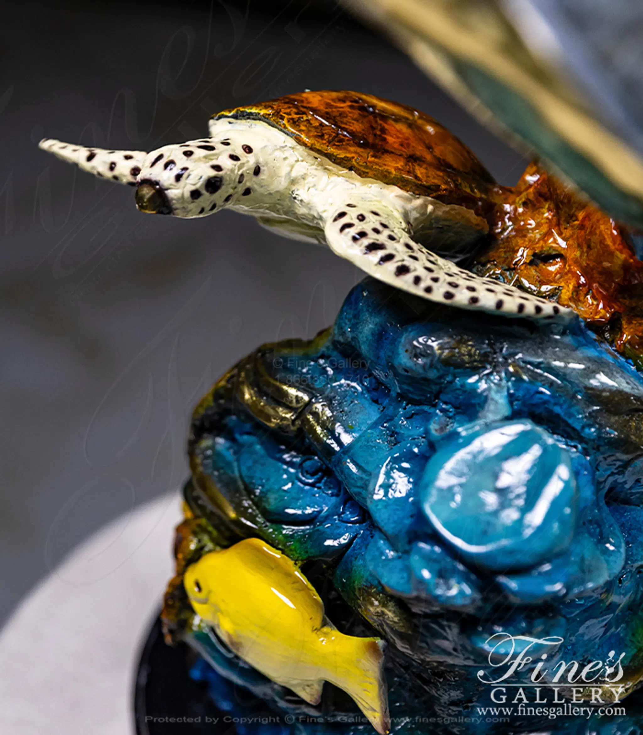 Dolphins and turtle themed fountain in Enamel Bronze - BF-917 (View 10)
