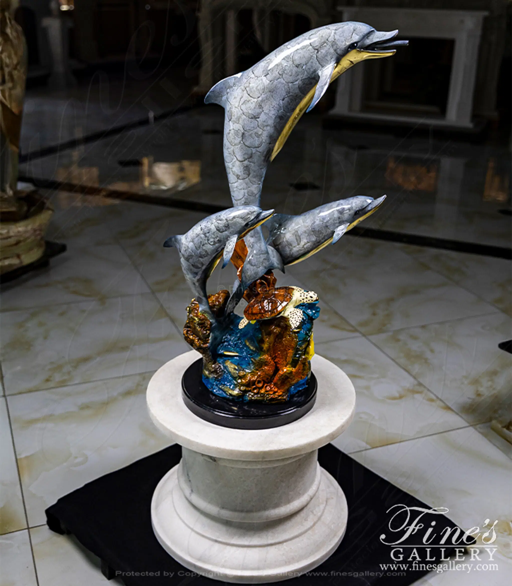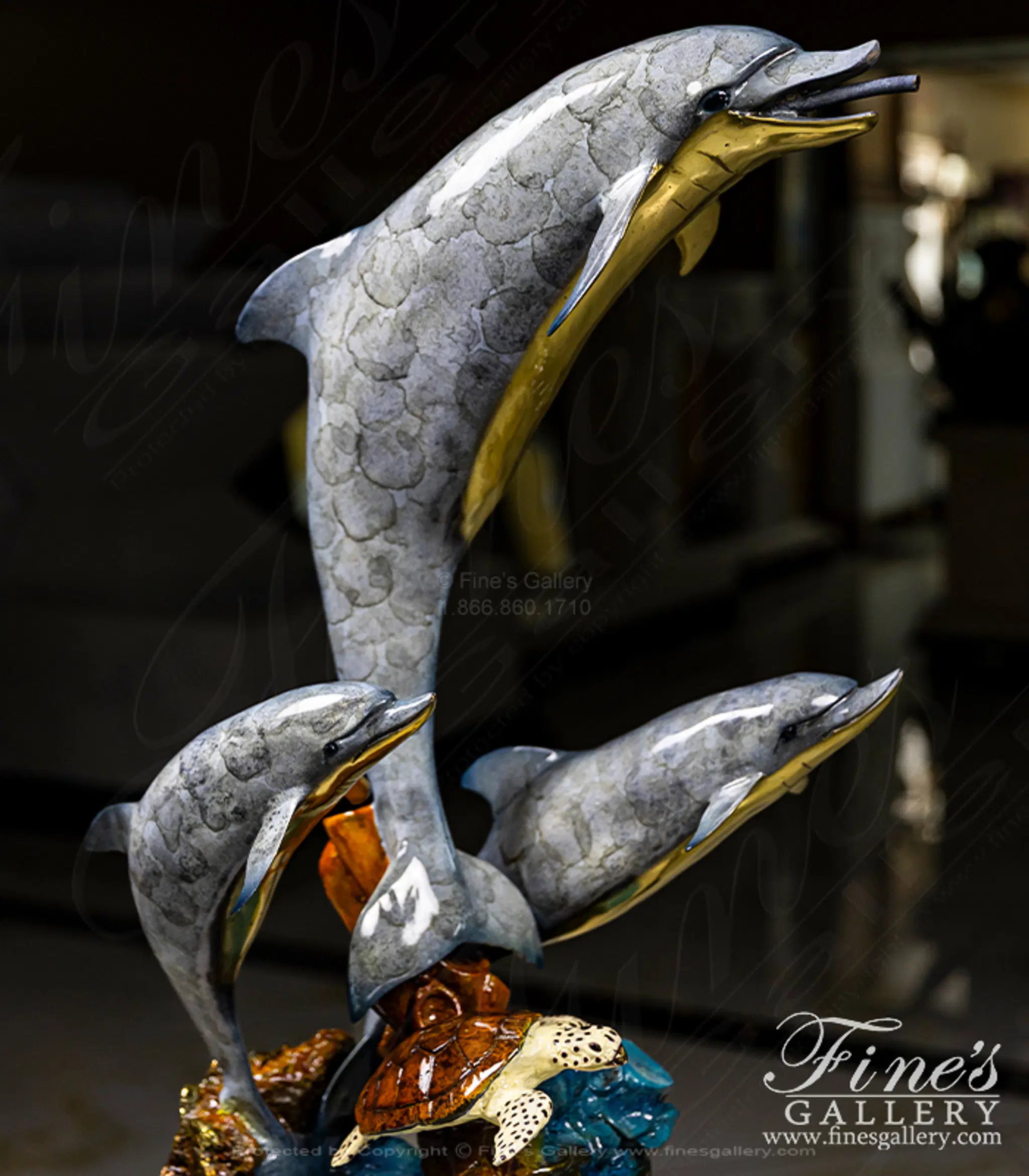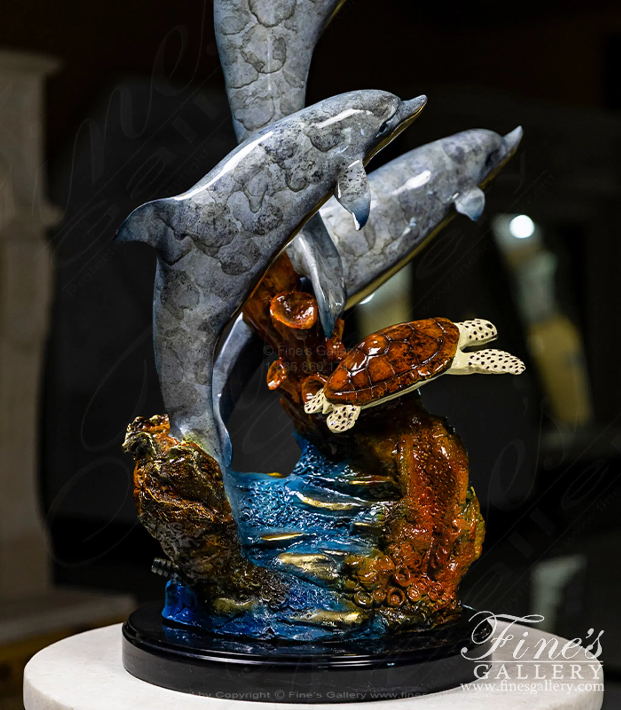 Dolphins and turtle themed fountain in Enamel Bronze - BF-917