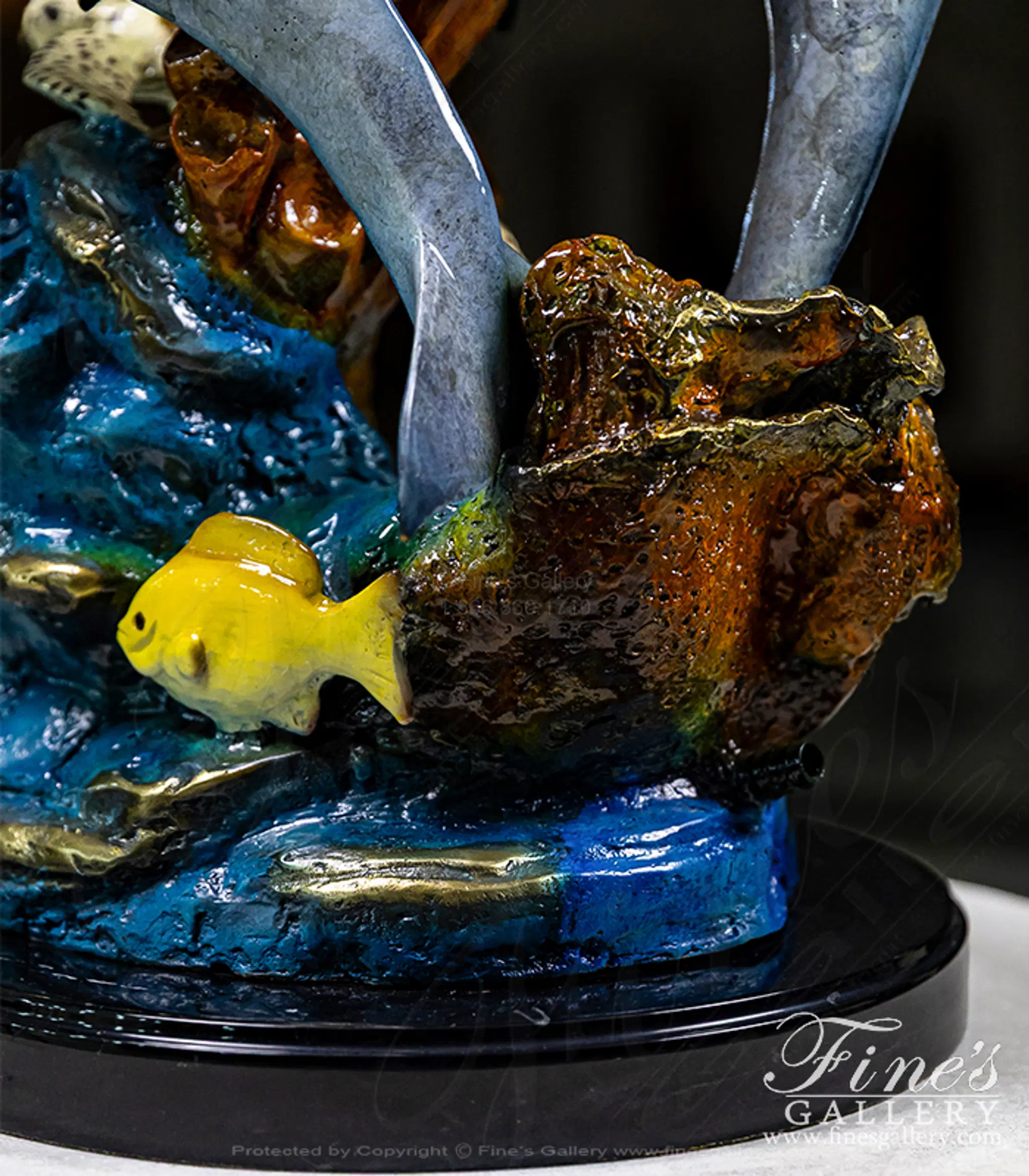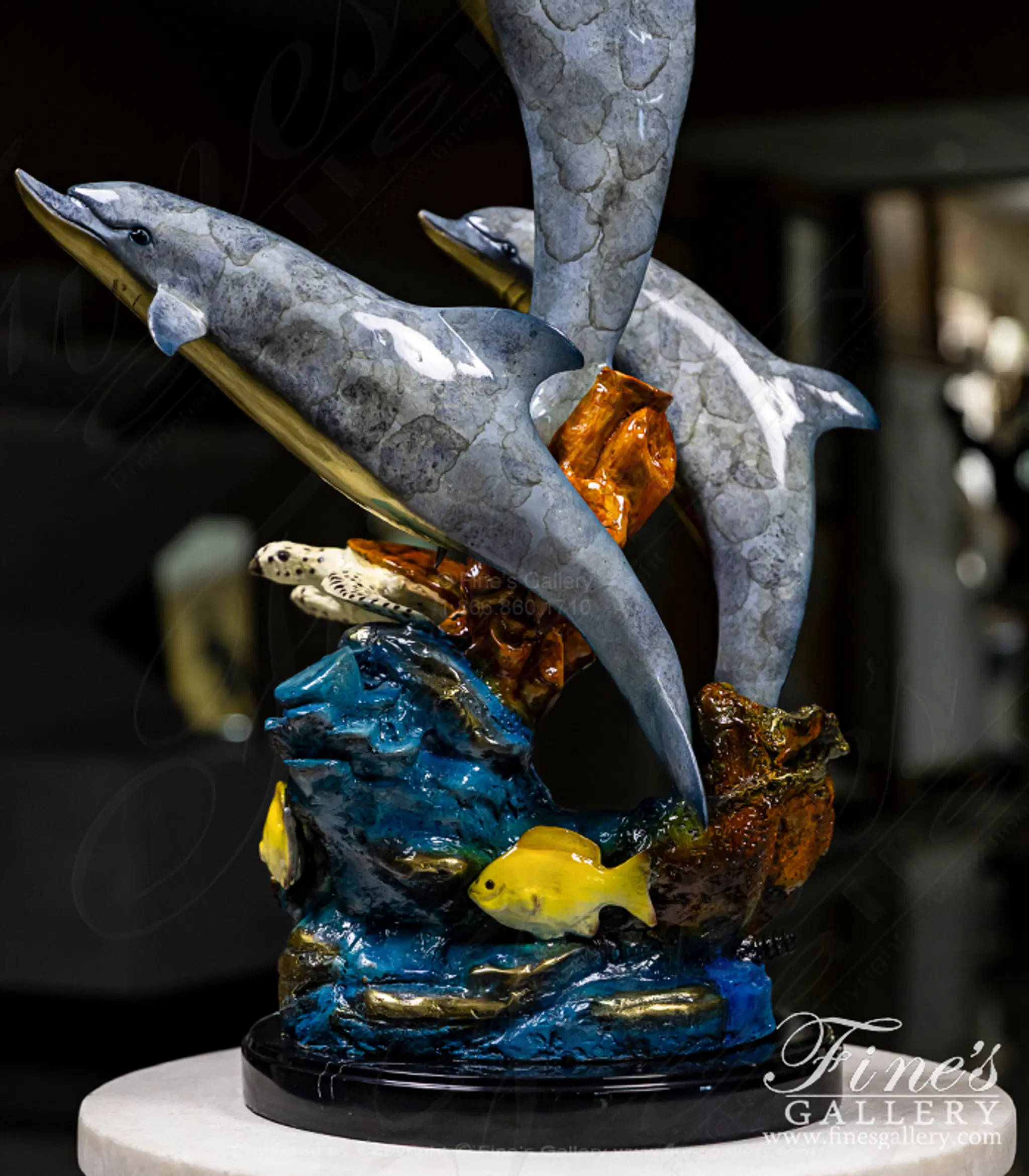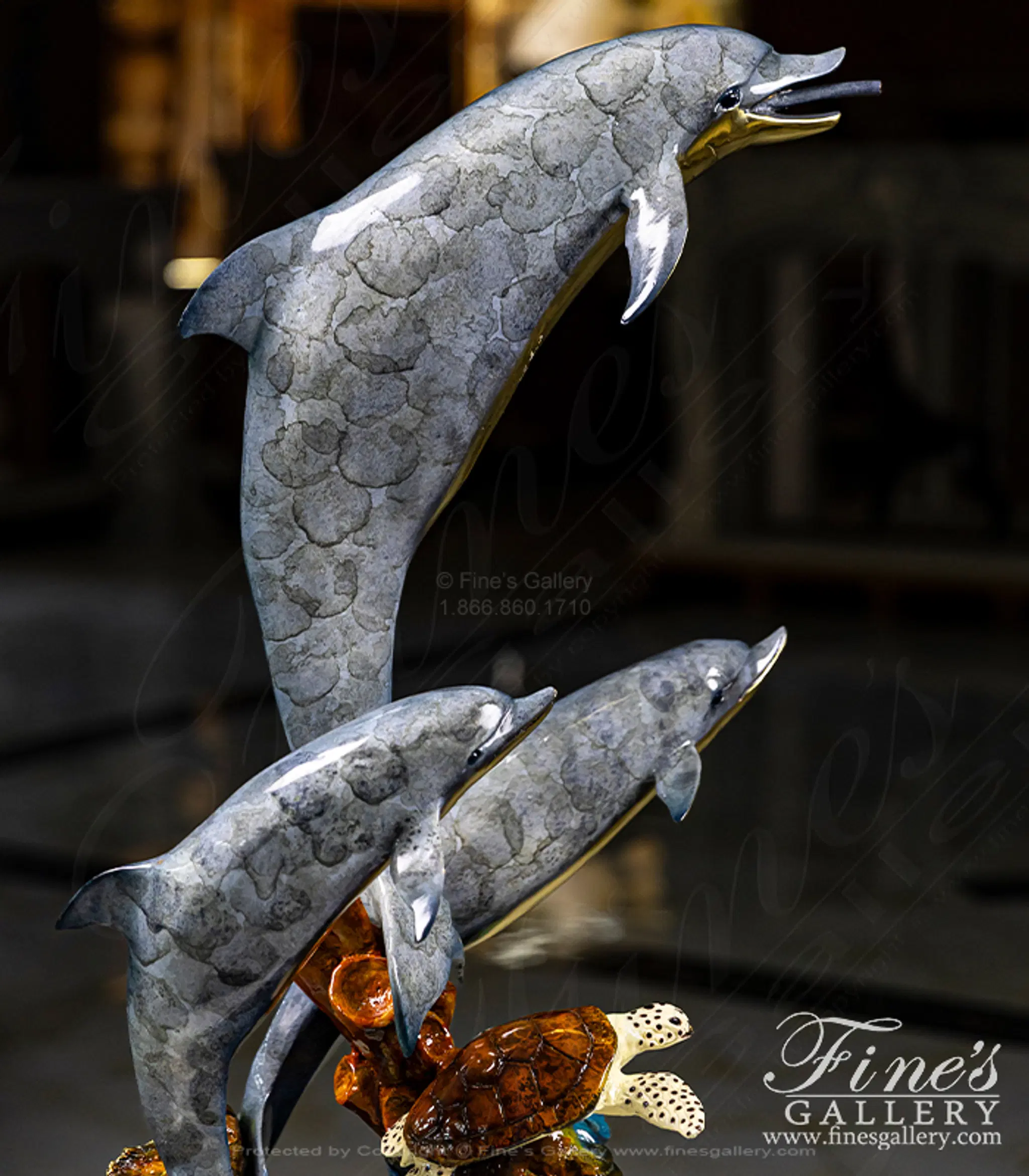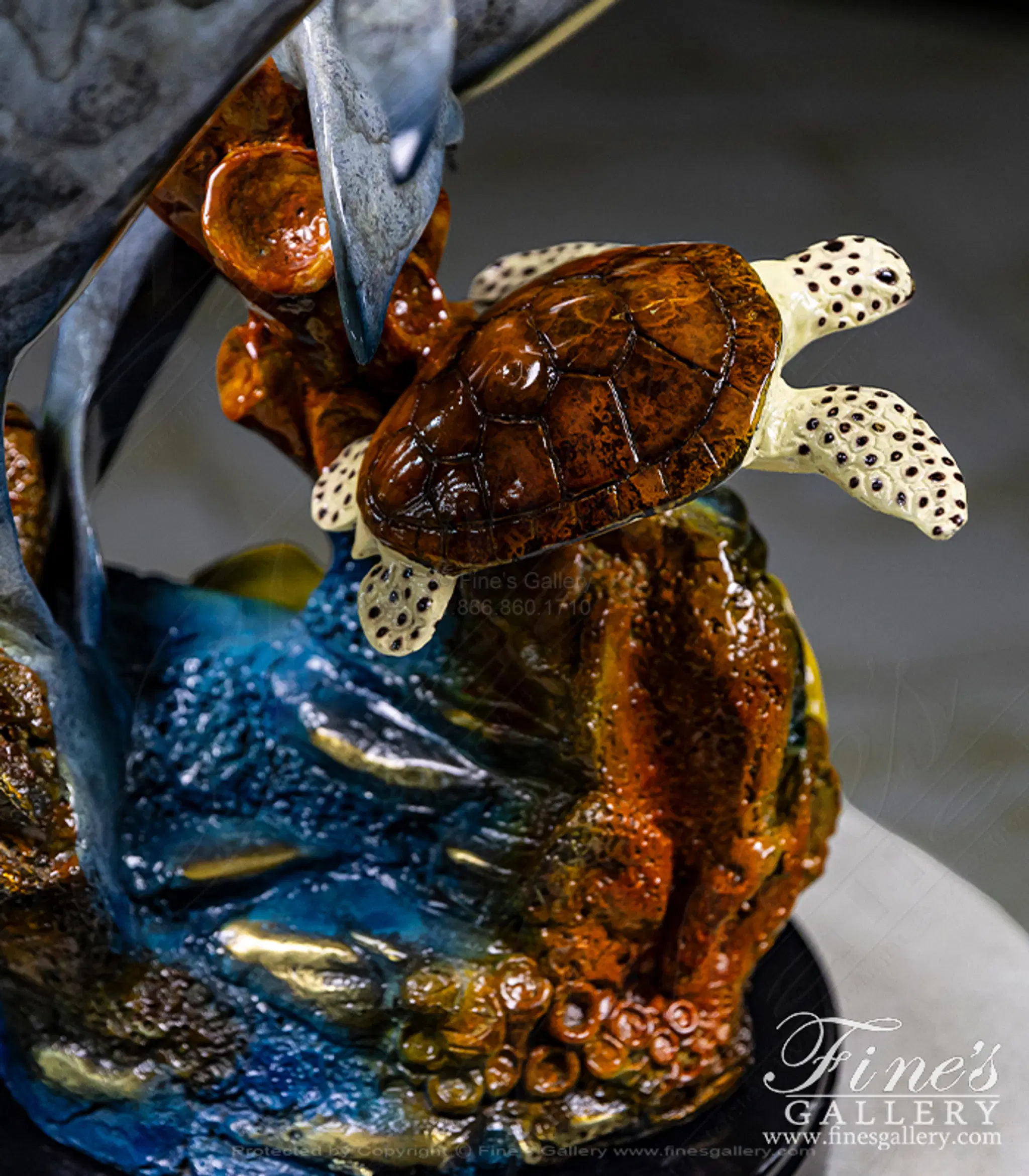 Dolphins and turtle themed fountain in Enamel Bronze - BF-917 (View 2)