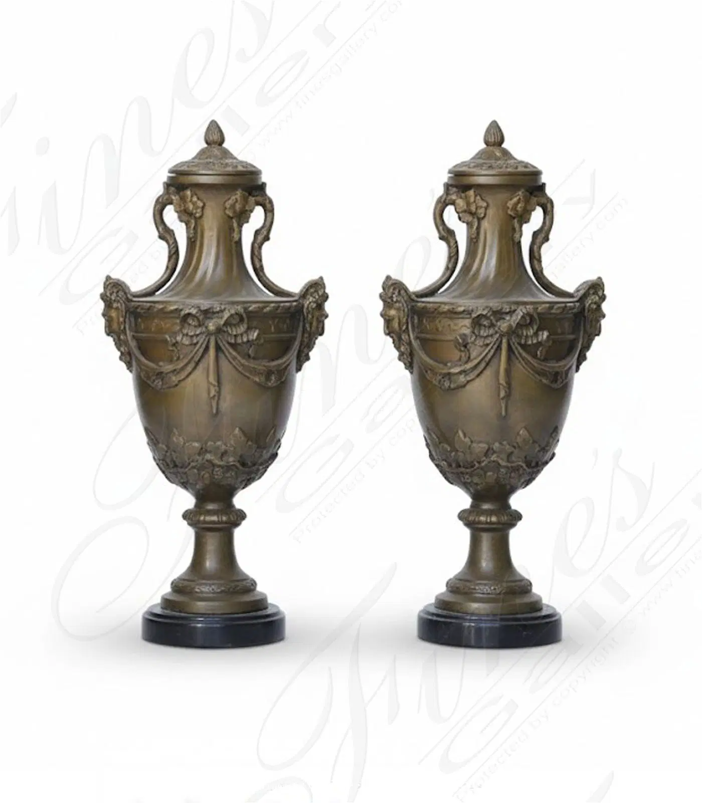 Vintage Bronze Urn Pair 17.5 Inches - BP-1181
