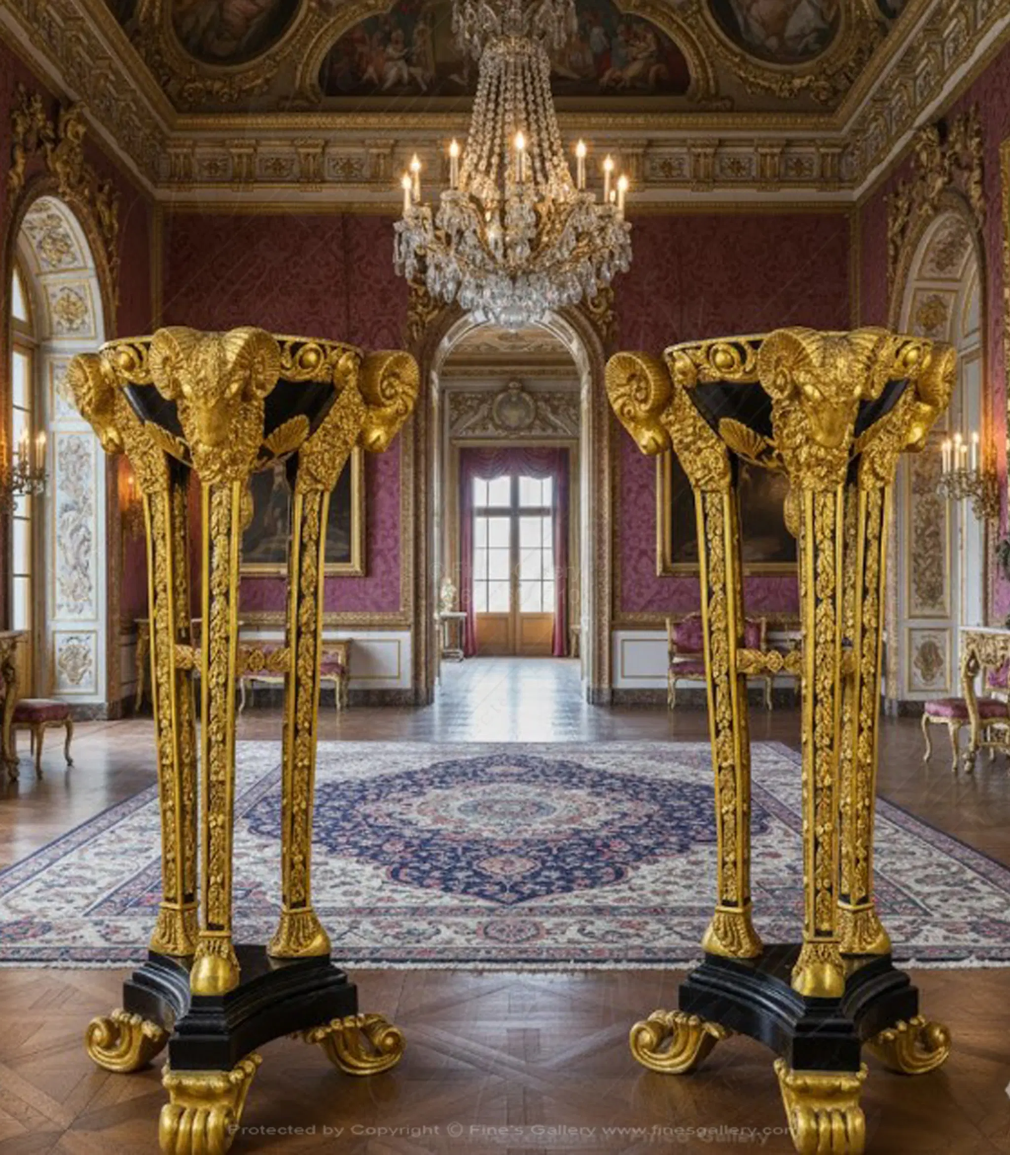 Gilt Bronze Ram Head Urn Pair - BP-119 (View 5)