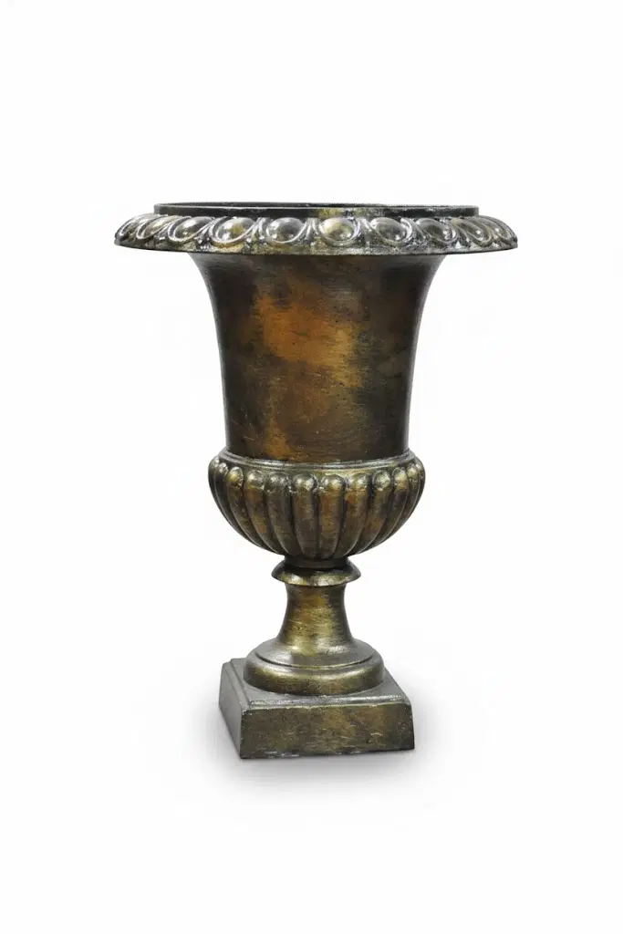A beautiful urn shaped cast iron planter, with a deep bowl and artistic details. Skillfully crafted this planter is the perfect accent for indoor or out. Enhance the beauty of your home today with this enchanting bronze planter.