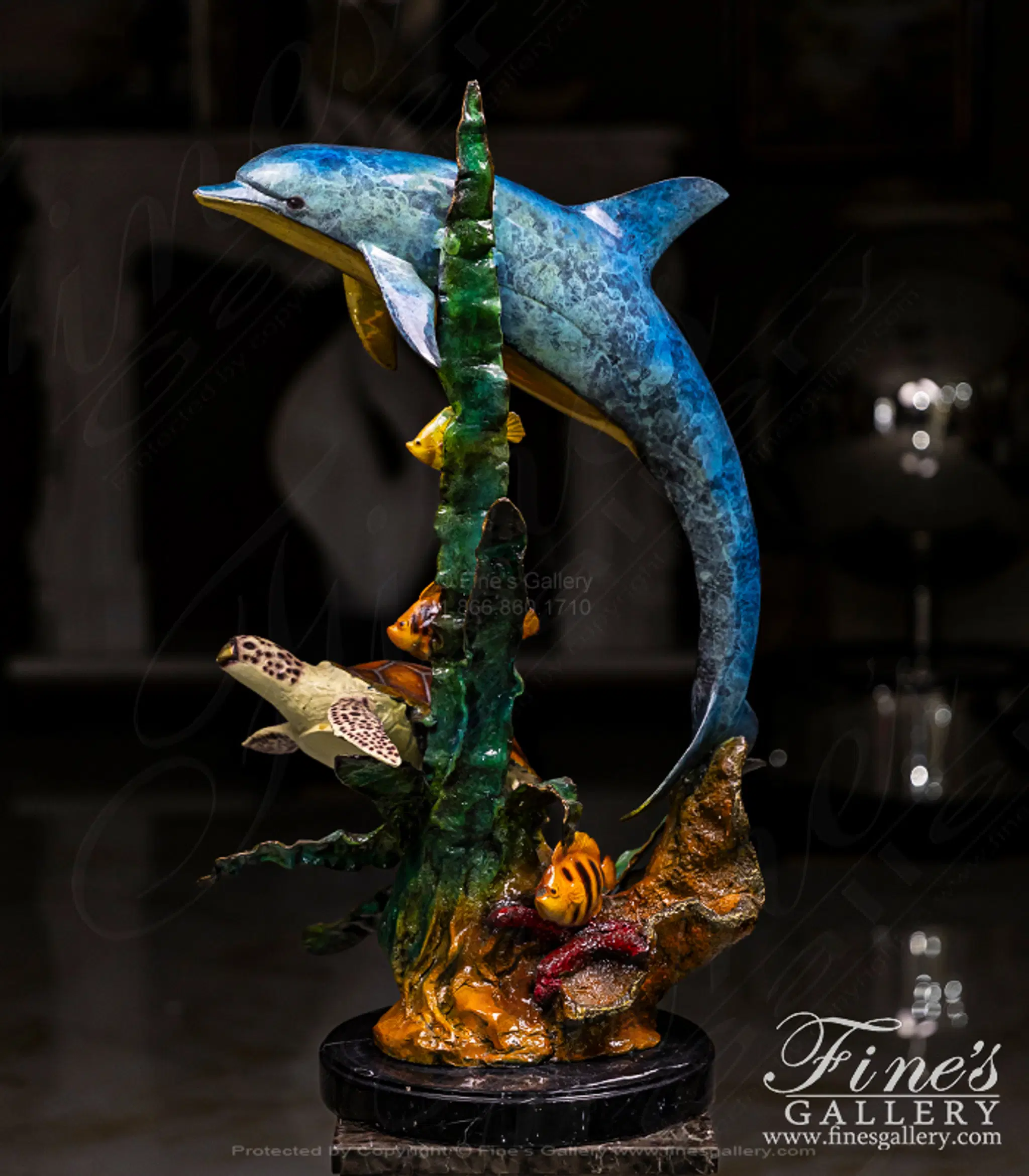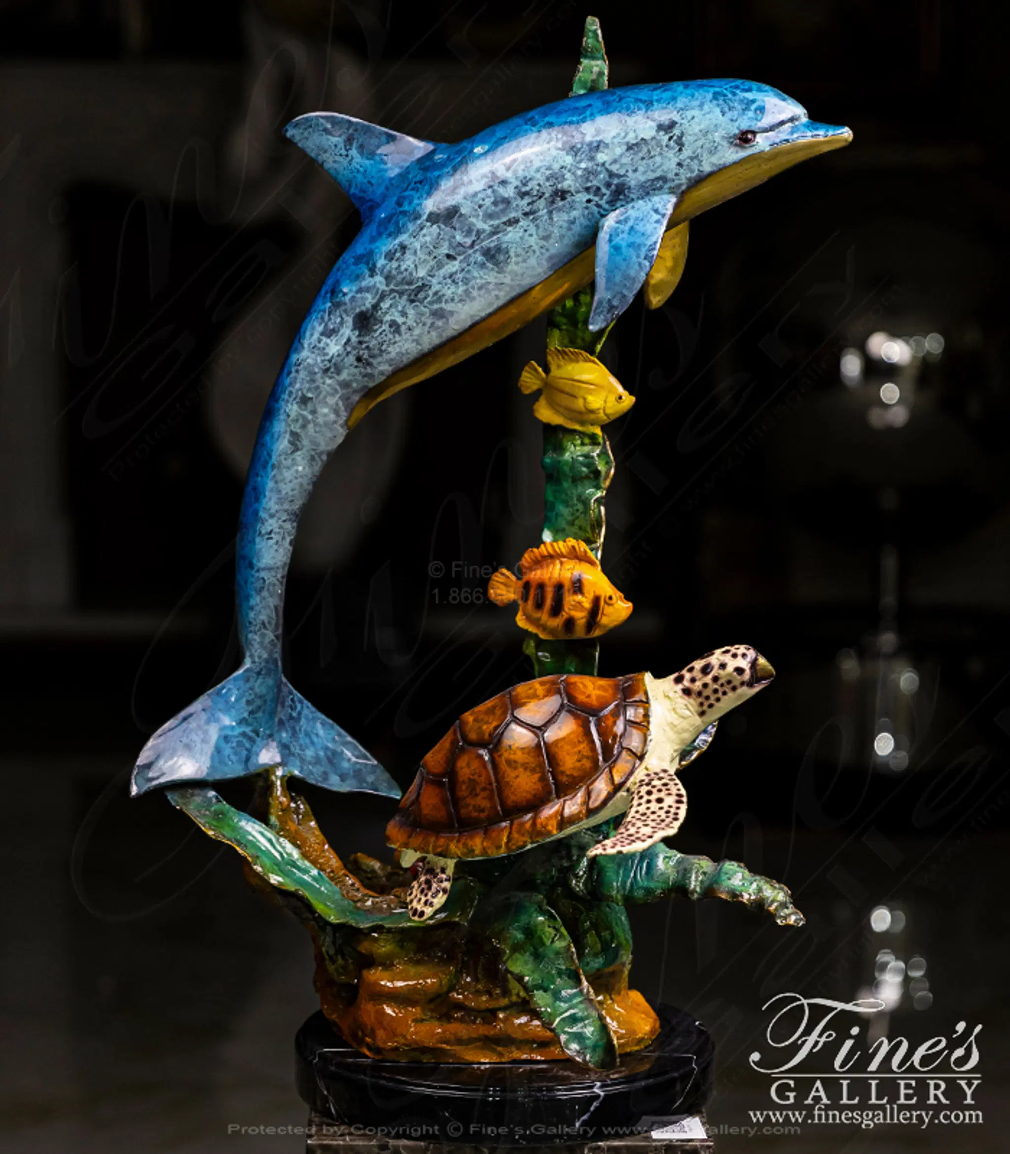 Dolphin, Turtle & Fish Bronze Sculpture - BS-1318 (View 2)