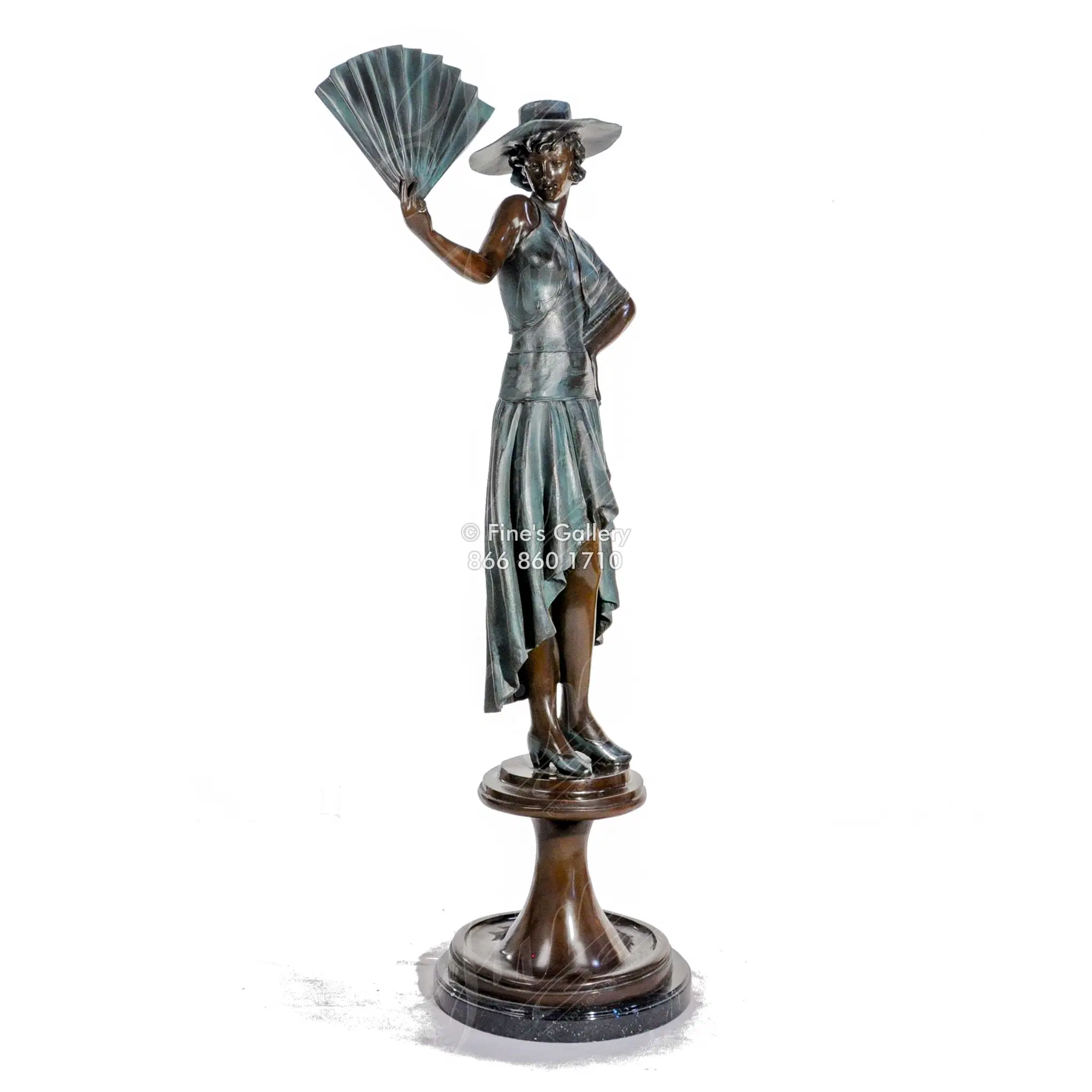 A vintage Lady Standing Holding Fan Bronze Statue - BS-141