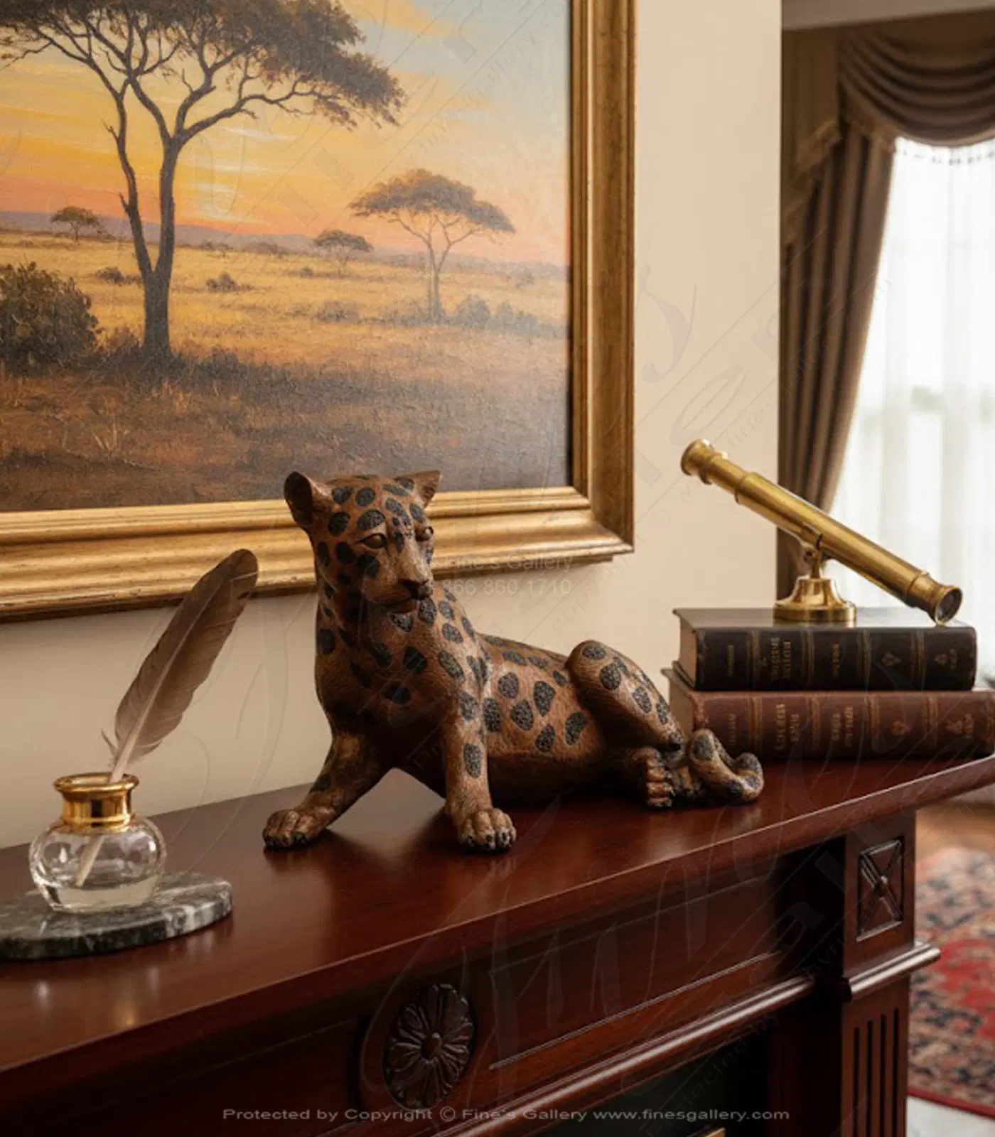 Beautiful bronze cheetah reclining, expertly crafted and finished. If you require additional information for this product please call 1-866-860-1710 and talk with a sales representative at anytime.