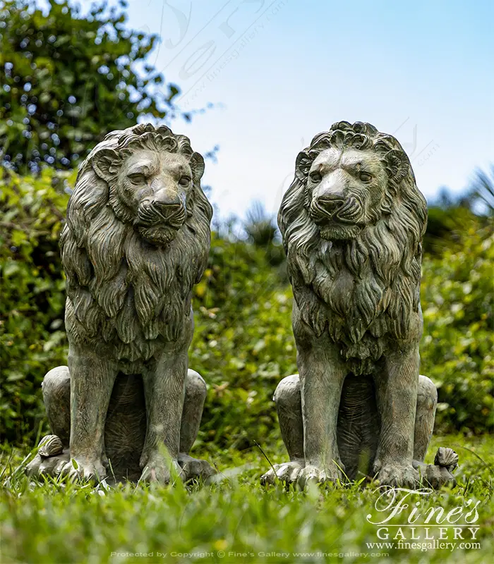 Antique Patina Seated Bronze Lion Statue Pair - BS-1586 (View 2)