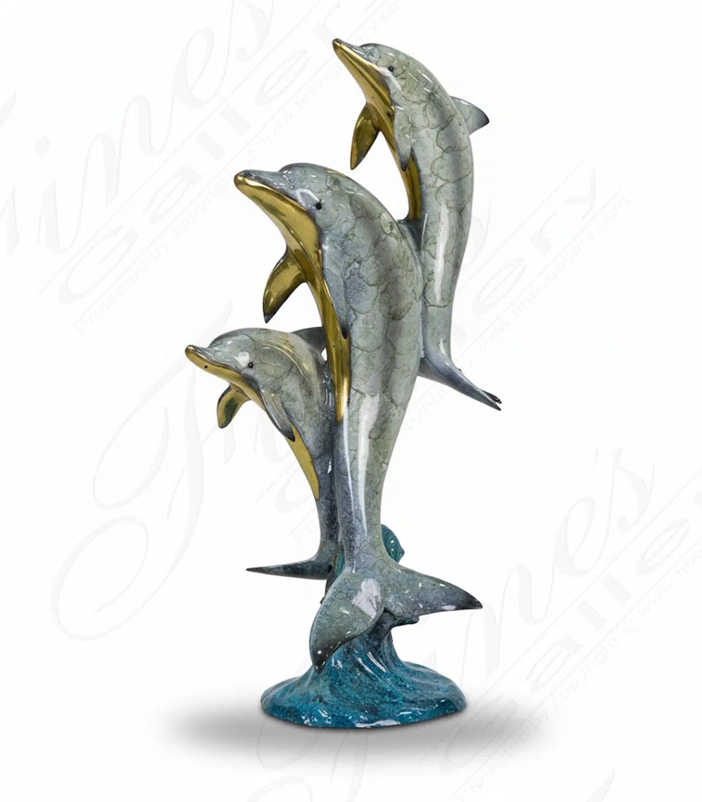 Aqua Marine Blue Three Bronze Dolphins Desktop Statue