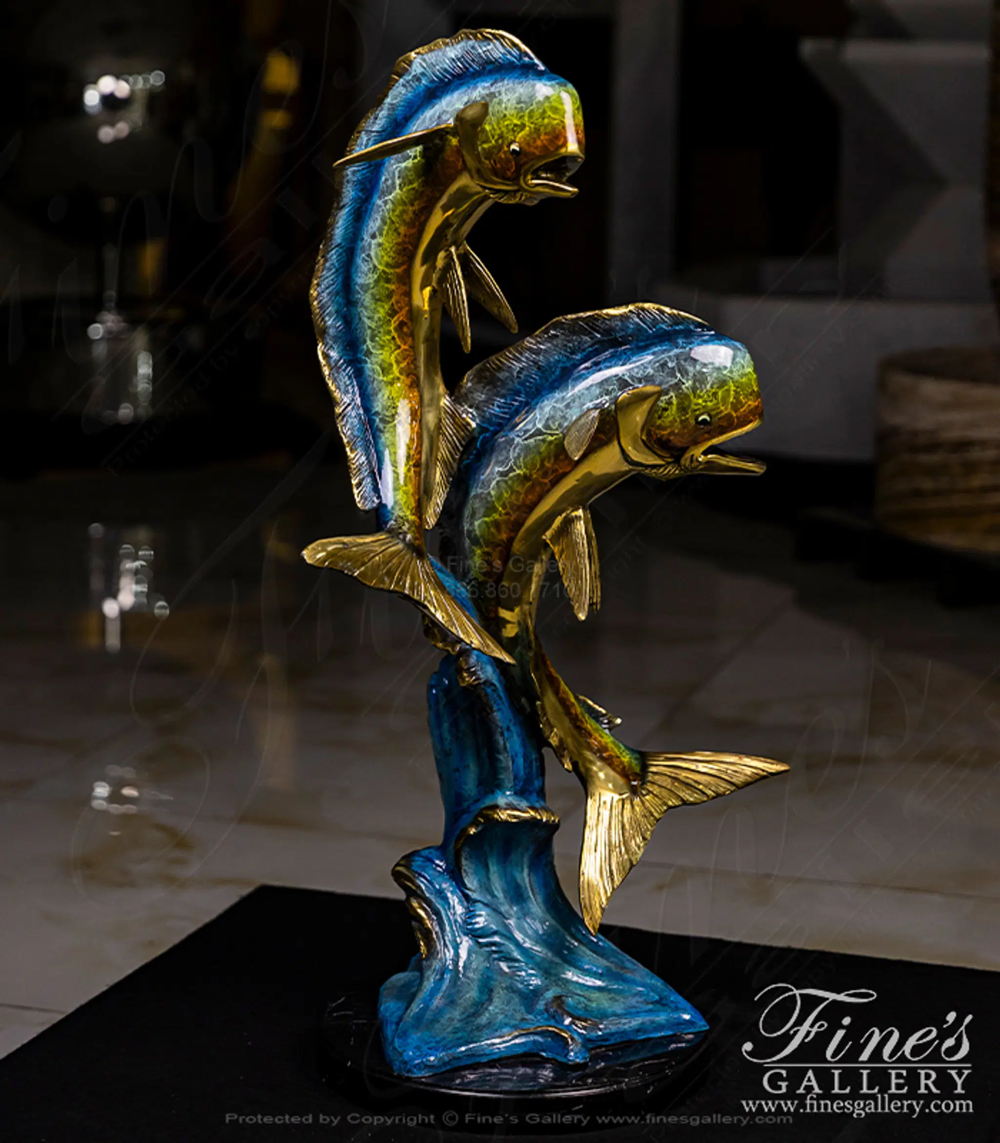 Mahi Mahi Bronze Statue perfect for top of pedestal or in your lanai.