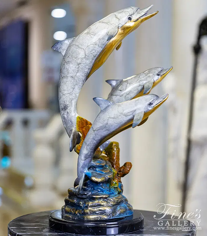 Tropical Three Dolphins Bronze Tabletop Statue - Elegant Home Decor Sculpture - BS-1698 (View 7)