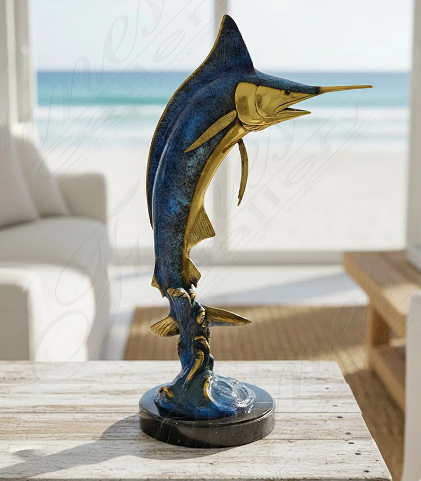 Desktop Bronze Marlin Statue - Handcrafted Marine Life Sculpture for Home and Garden Decor - BS-1721