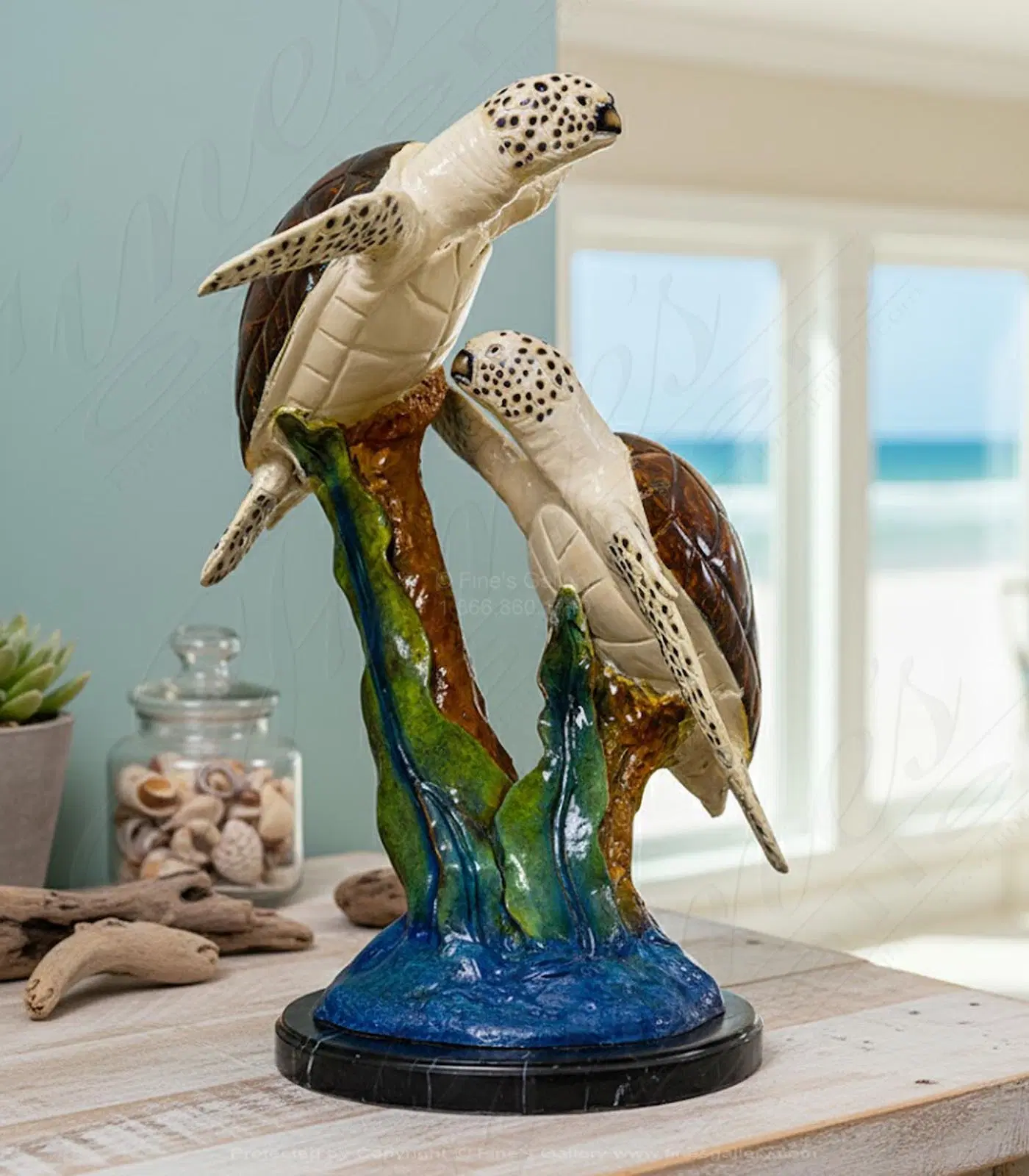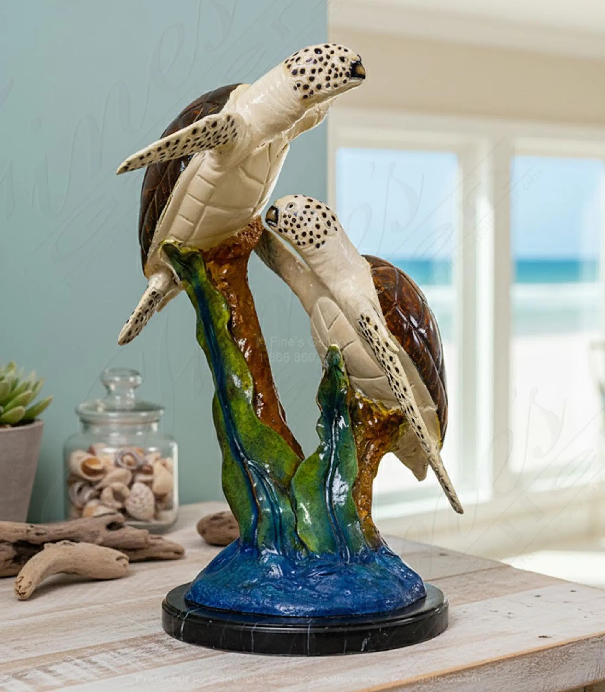 Brilliant Colorful Bronze Sea Turtles Statue - BS-1725 (View 6)