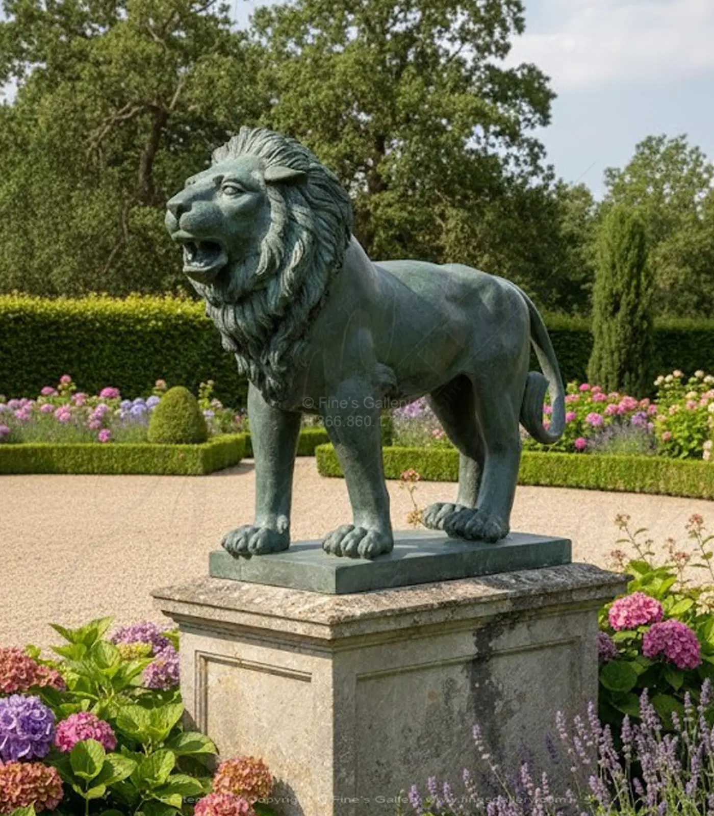This bronze lion stands guard and watch over their pride and protects from any dangers they encounter. This wonderful piece is cast in bronze and finished with a beautiful patina.