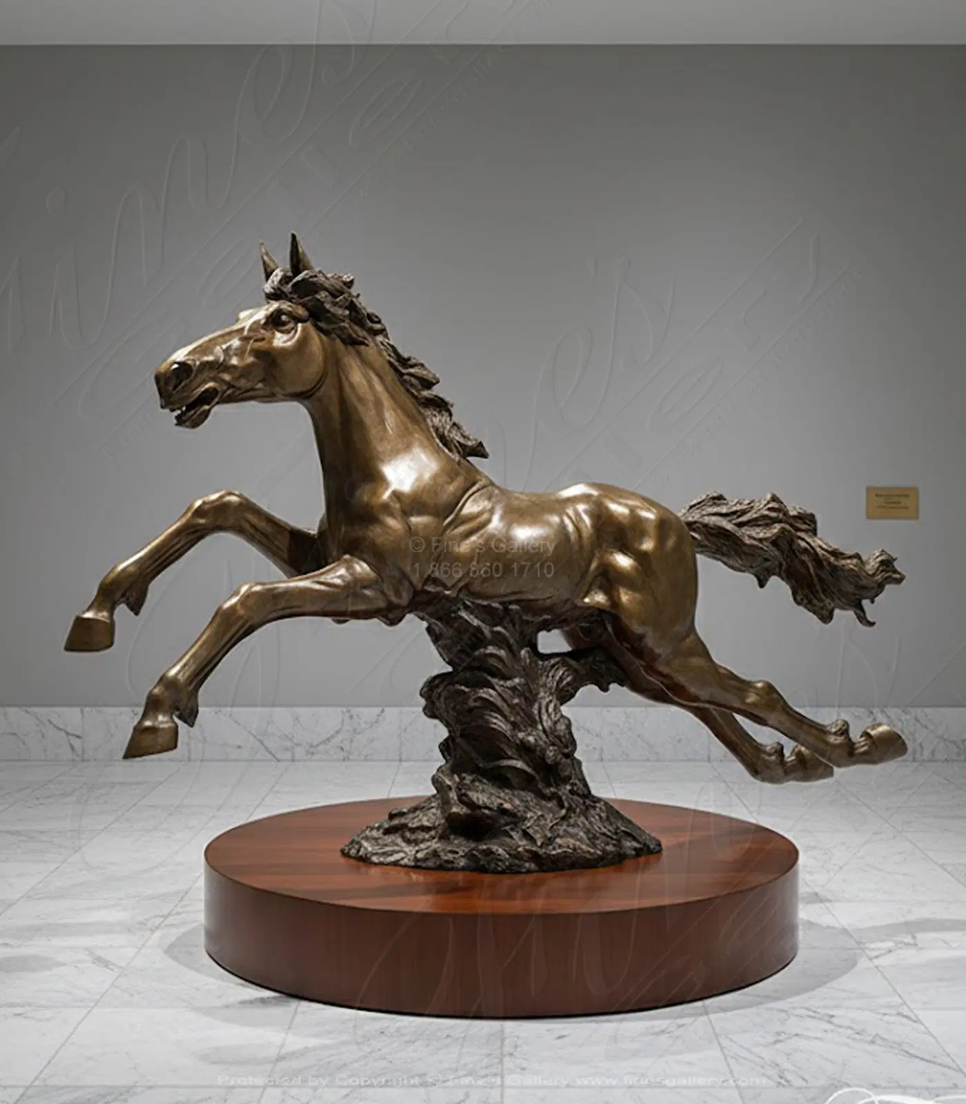 Dynamic Bronze Colt Statue captures the spirit of a young horse in motion, with intricately detailed wind-blown mane and tail. This exceptional bronze sculpture features a beautiful finish that enhances the natural beauty and flowing movement of the running colt. Perfect as a striking decorative accent for home, office, or as a meaningful gift for horse enthusiasts. Handcrafted with attention to detail, this premium quality bronze statue brings eleg
