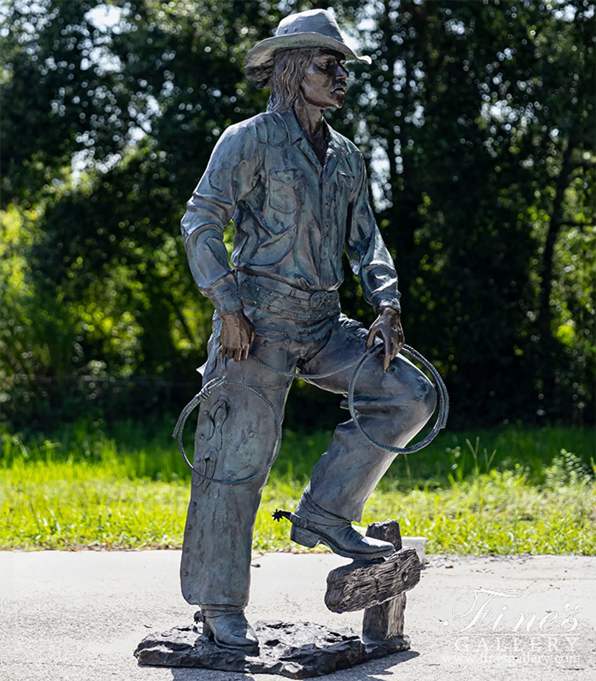 Vintage Bronze Cowboy Statue - Hand Carved Western Sculpture with Lasso - 25 Year Old Collectible Art - BS-504 (View 7)