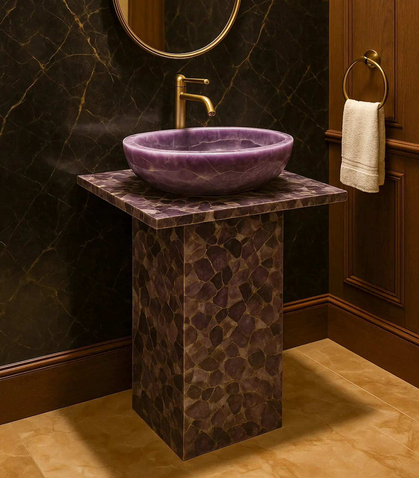 Give your home a feeling of majestic beauty and luxury with this stunning sink made of gorgeous onyx. Its contemporary design creates timeless elegance while the fascinating natural patterns and tones of this fine onyx captivates the imagination.