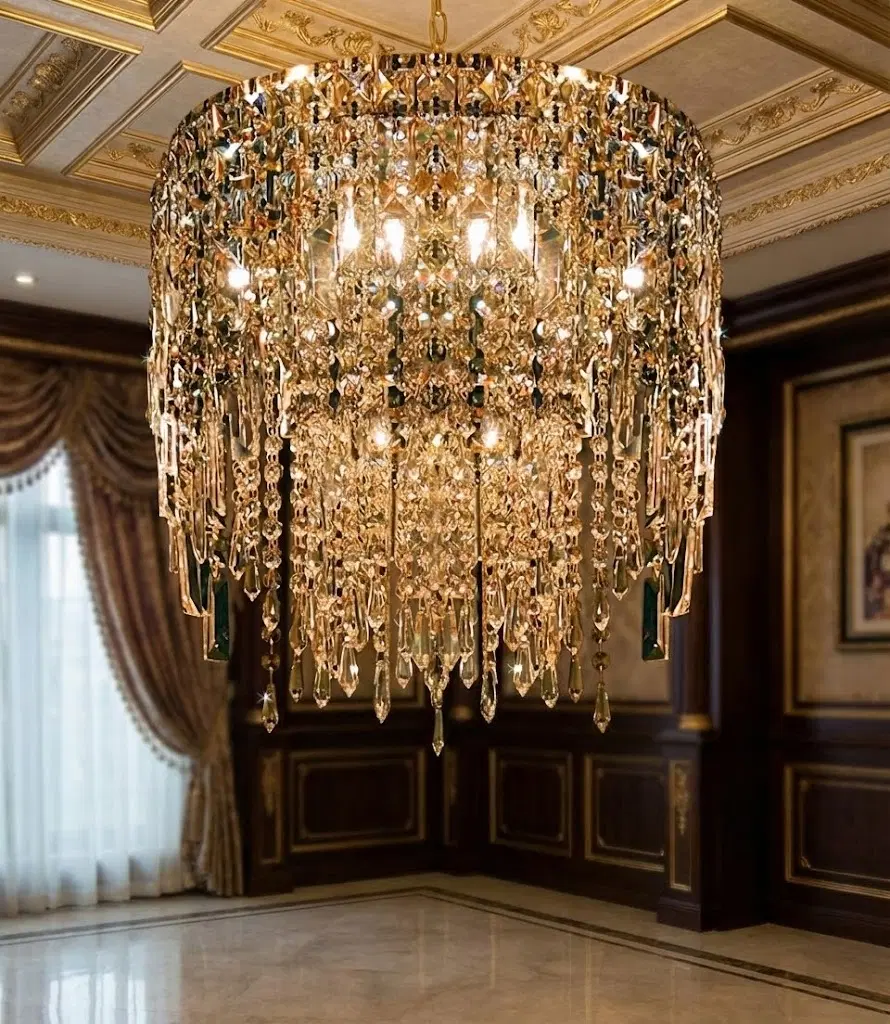 Crystal Chandelier - Elegant Home Lighting with Plated Hardware and Accented Patterns