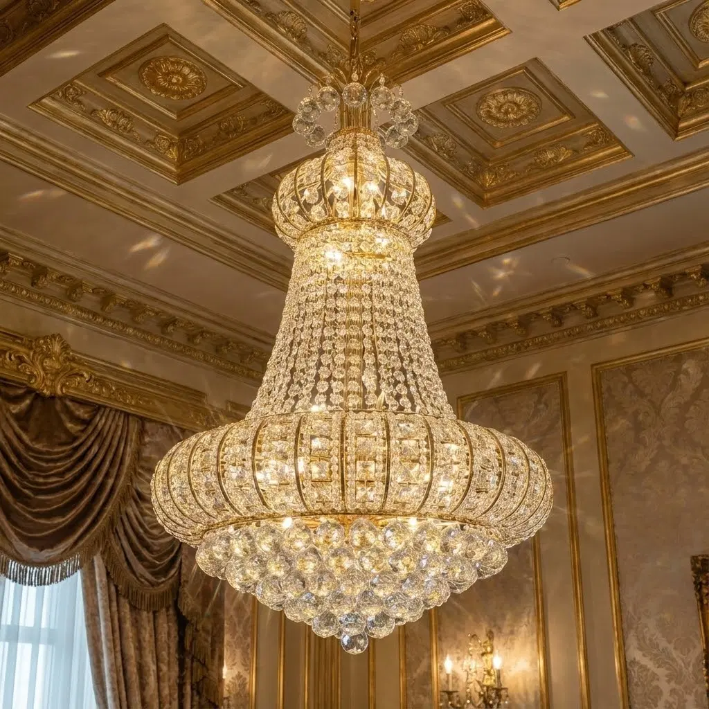 Magnificent Crystal Chandelier with Gold Plating - Elegant Luxury Lighting Fixture for Home