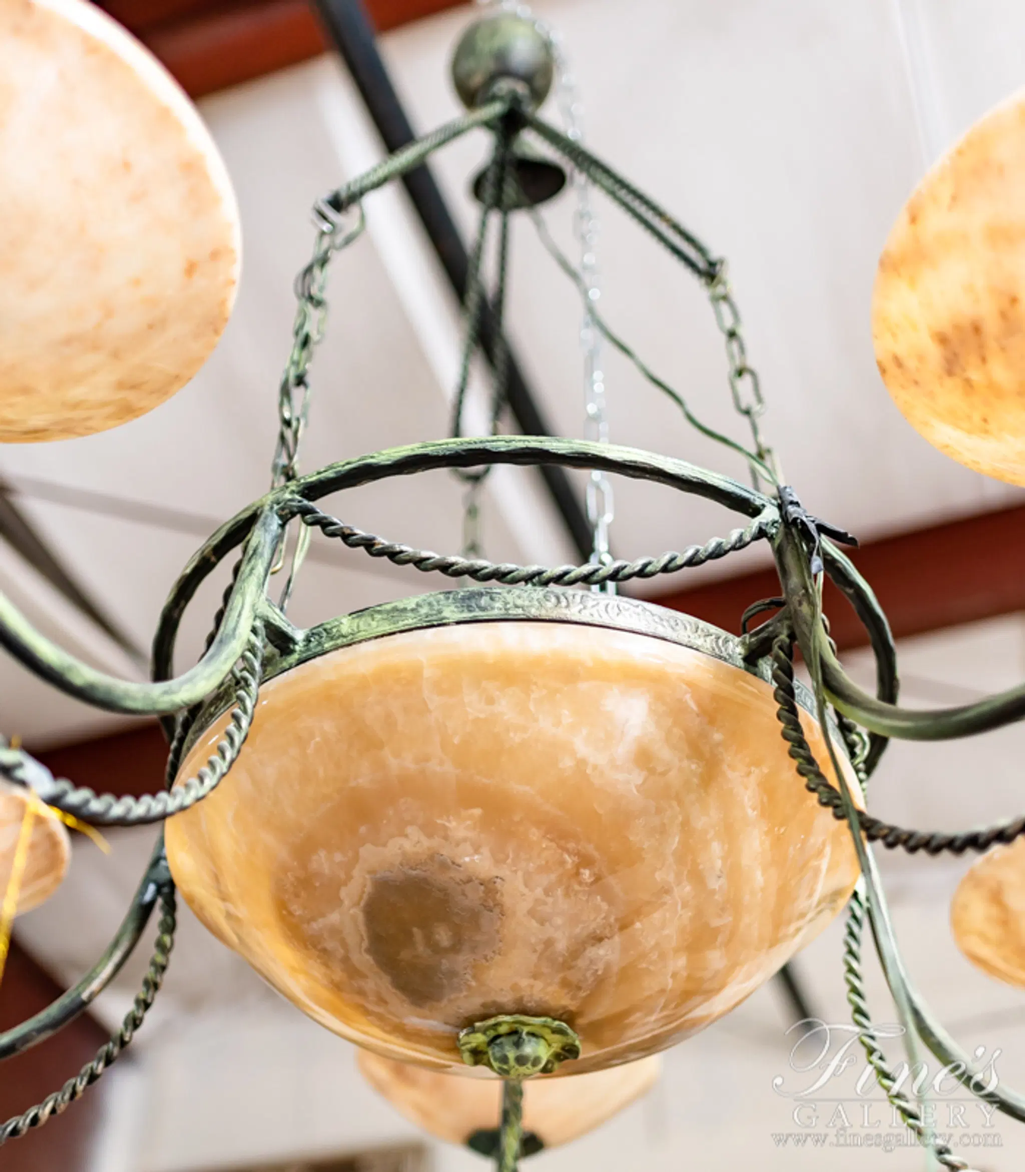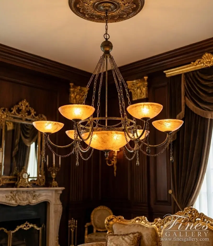 This spectacular chandelier is made of ornate black plated hardware and beautiful golden beige onyx light fixtures. Its majestic beauty and dramatic luminosity will create the perfect ambiance for your home. Call us today at 1-866-860-1710.