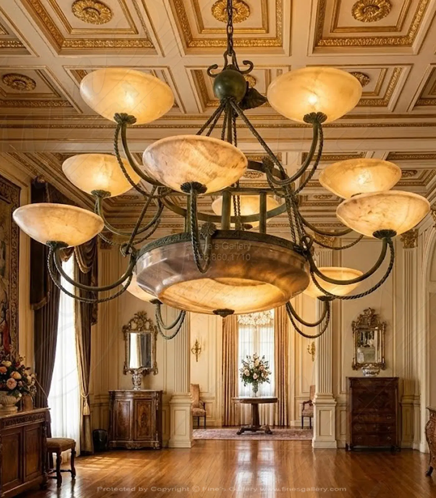 This sophisticated chandelier is made from ornately sculpted hardware and several onyx light fixtures in gorgeous light tones. Begin designing your dream home today complete with an enchanted ambiance created by this majestic onyx lighting chandelier.