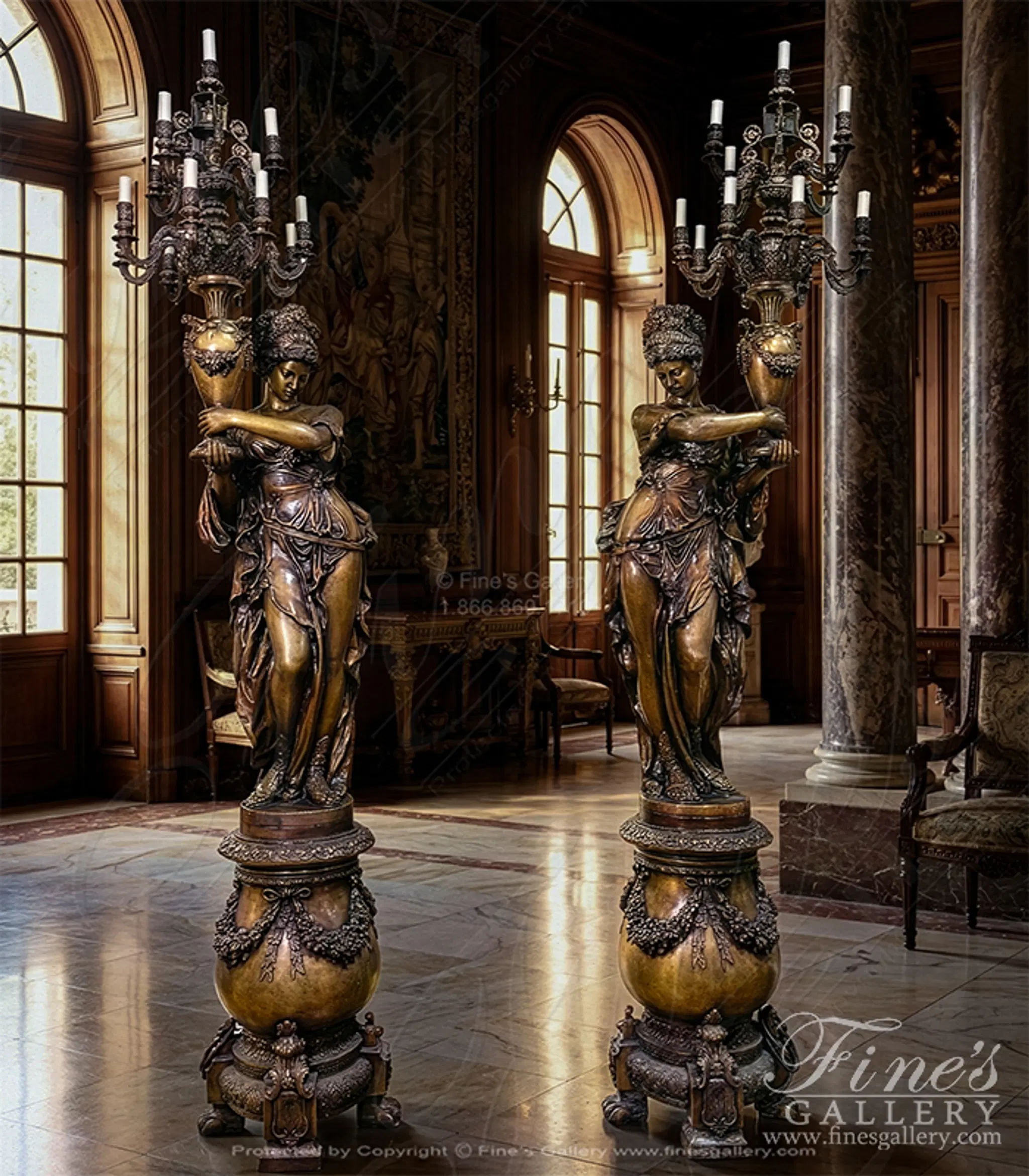 Life Size Bronze Figural Candelabra Pair - LMP-026 (View 7)